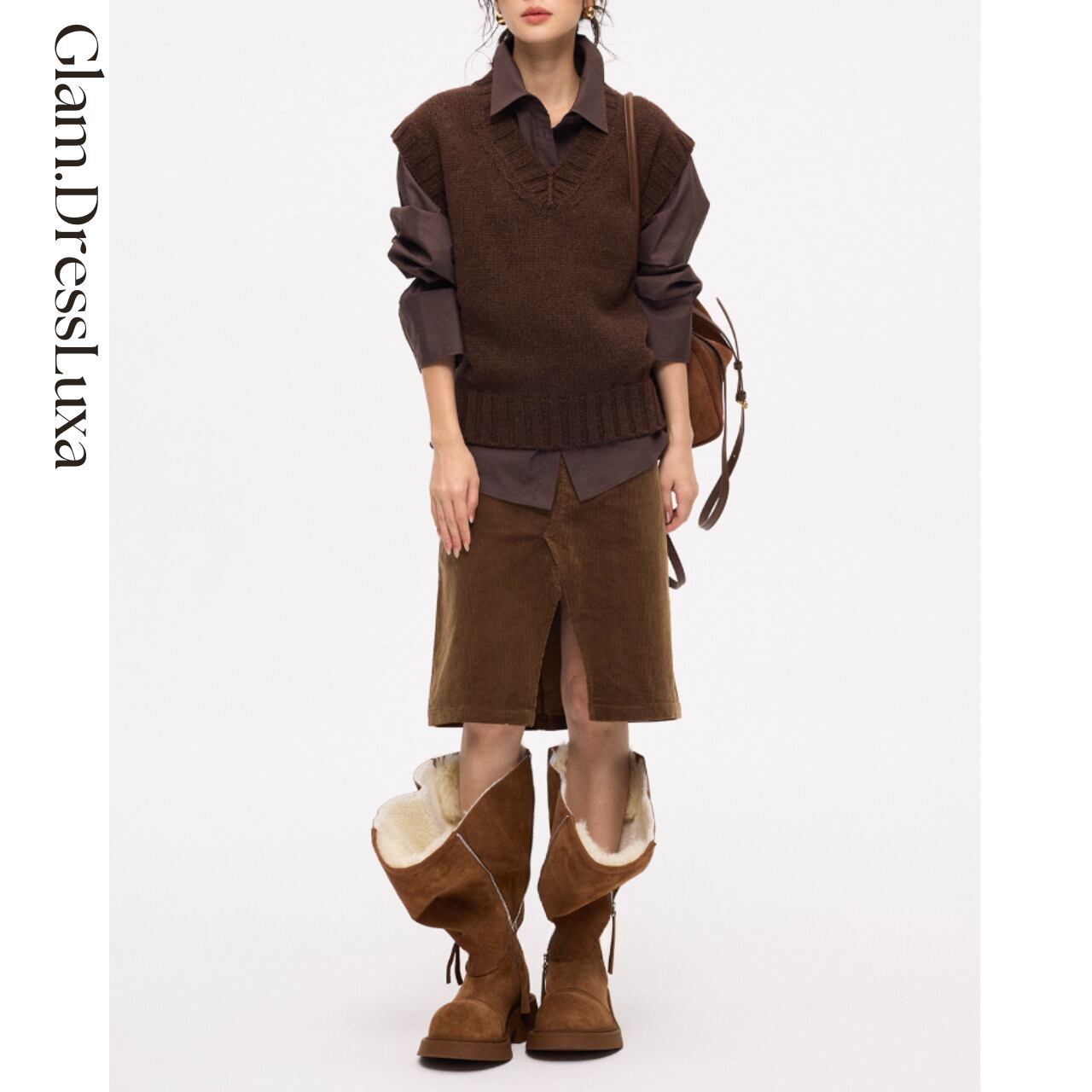 フロントスリットが脚さばきを良くし、ブーツ合わせにも映える大人の秋冬スタイルを演出。