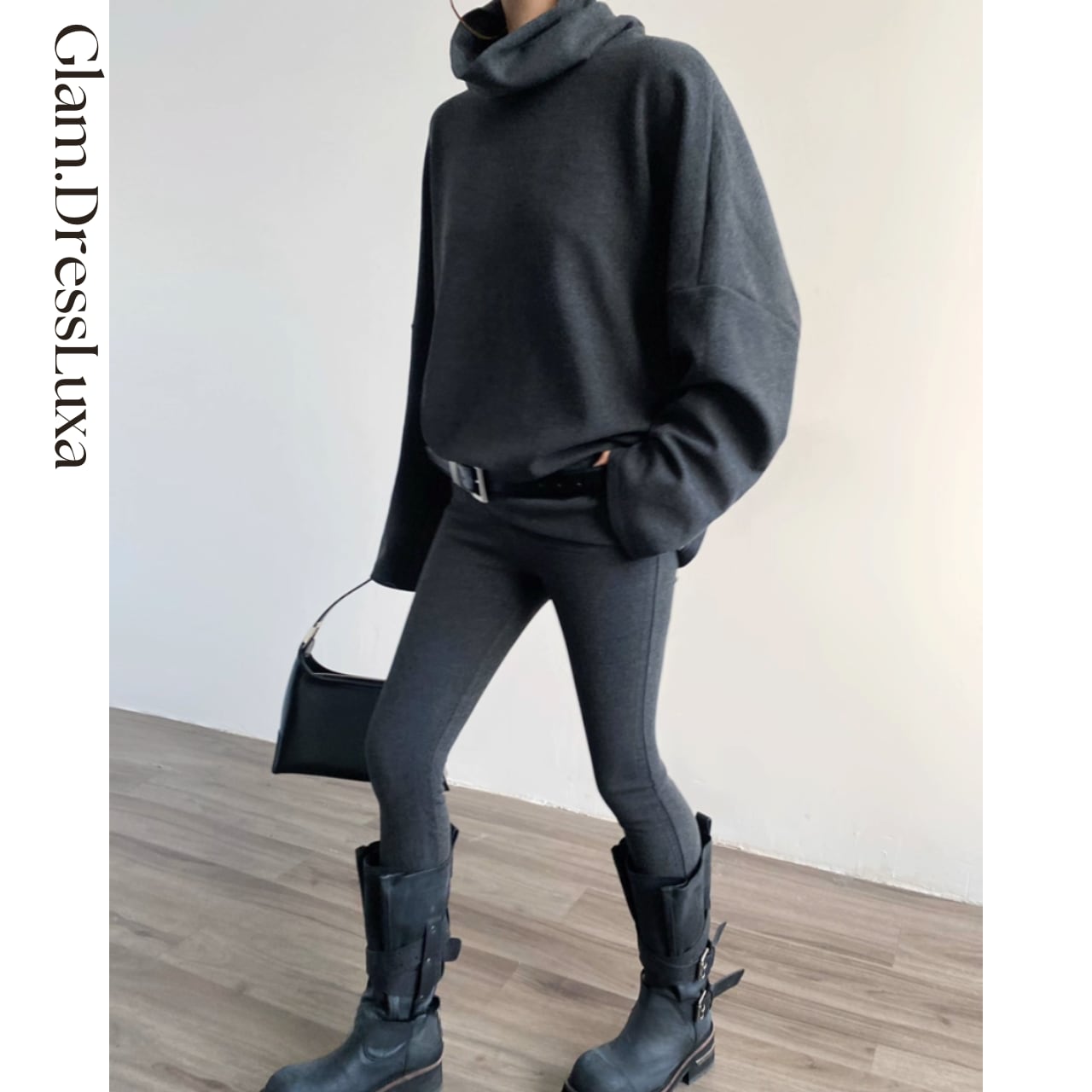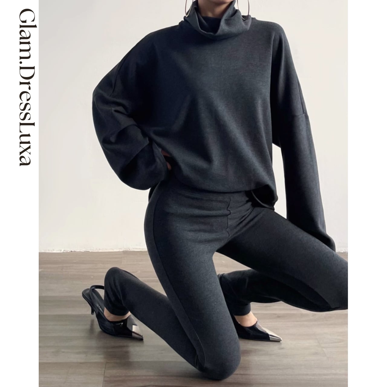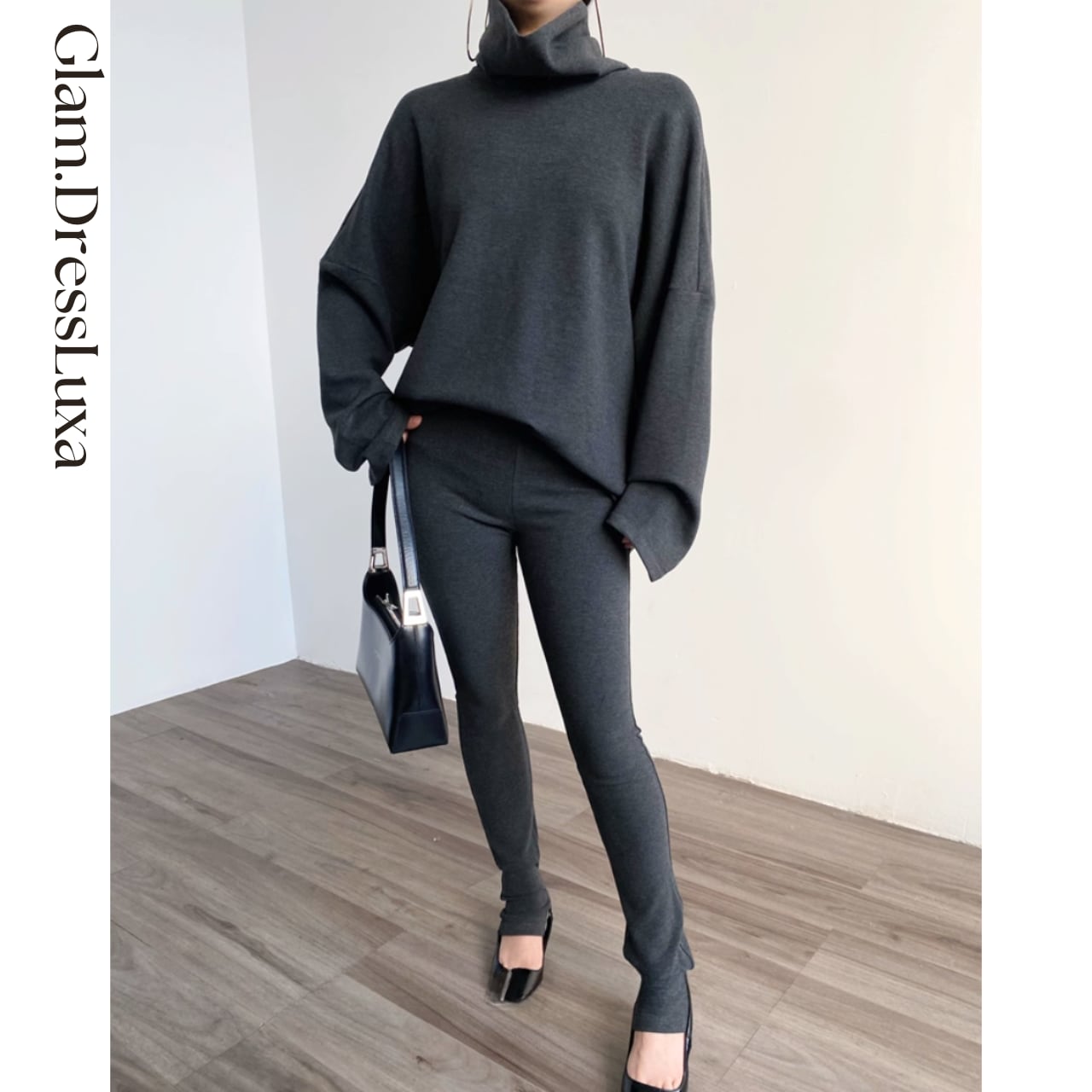 ・なめらかなタッチの柔らかニットで仕上げたリラックスセット。ゆったりと落ちるドルマンスリーブトップスと、身体のラインをすっきり見せるスリムパンツが絶妙なバランス。デイリーにもワンマイルにも使える、ミニマルで洗練されたセットアップです。