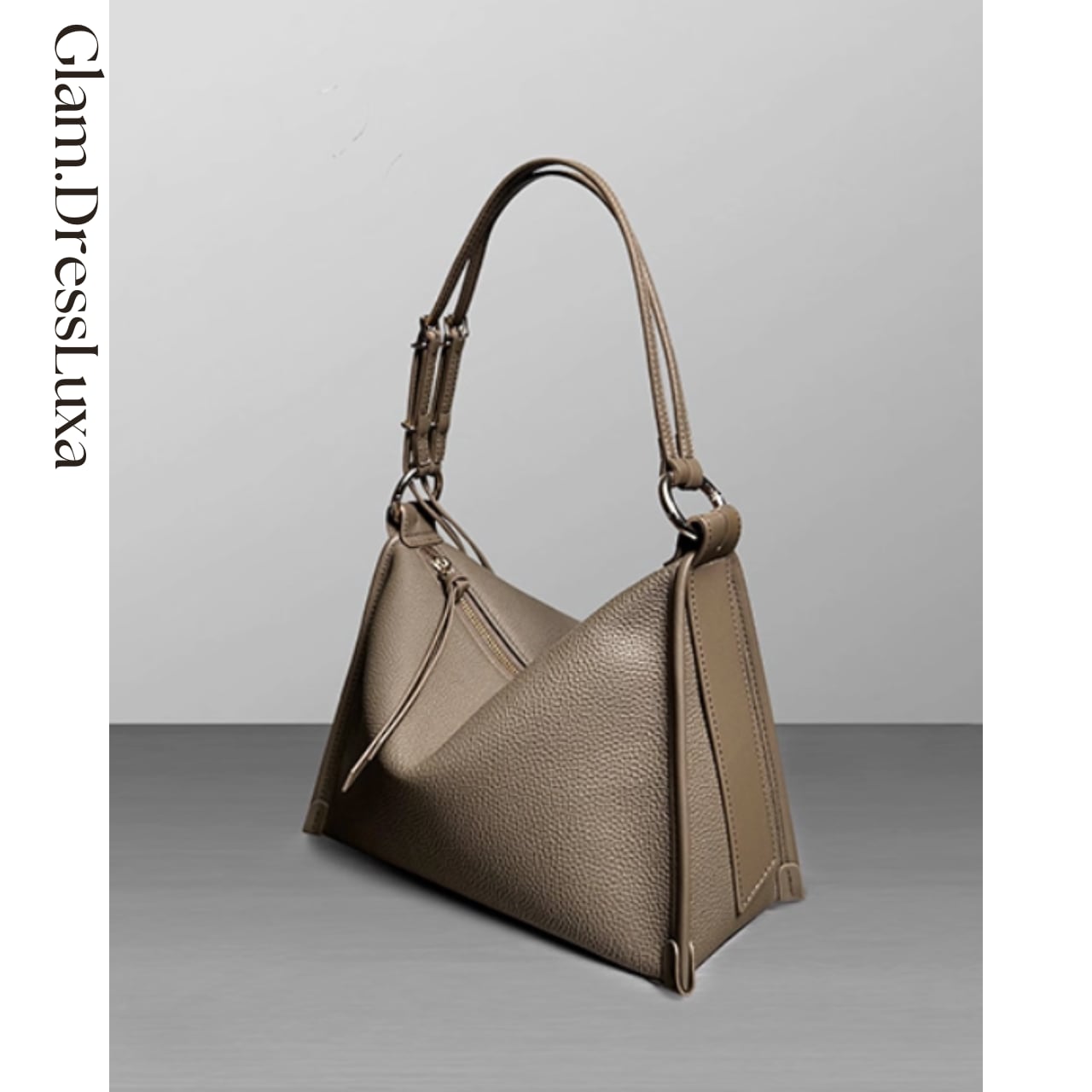ミニマルな三角フォルムが自然とシルエットをつくり、持つだけで都会的な印象に。
