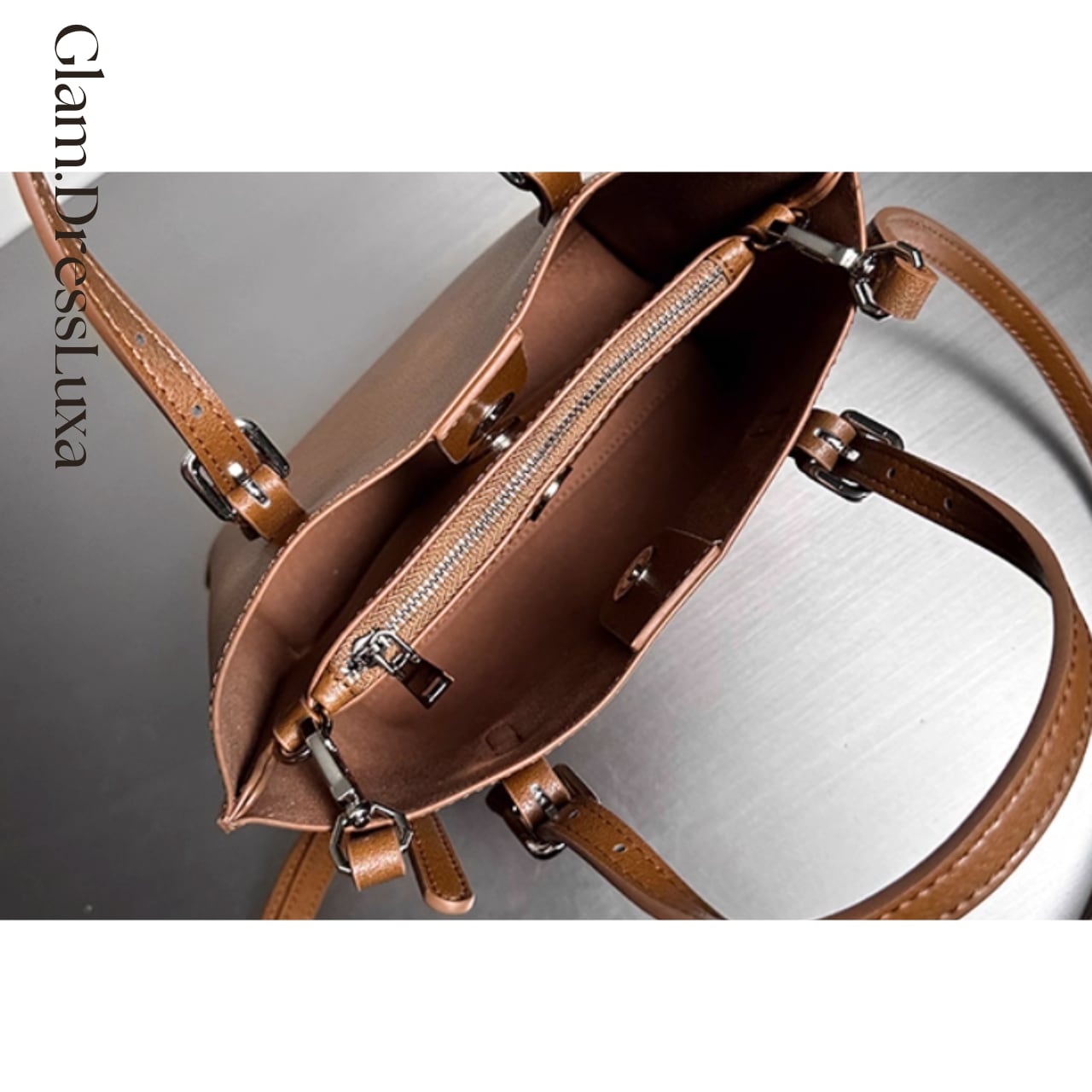 持ち手は細身で上品に仕上げ、取り外し可能なショルダーストラップで斜め掛けにも対応。
