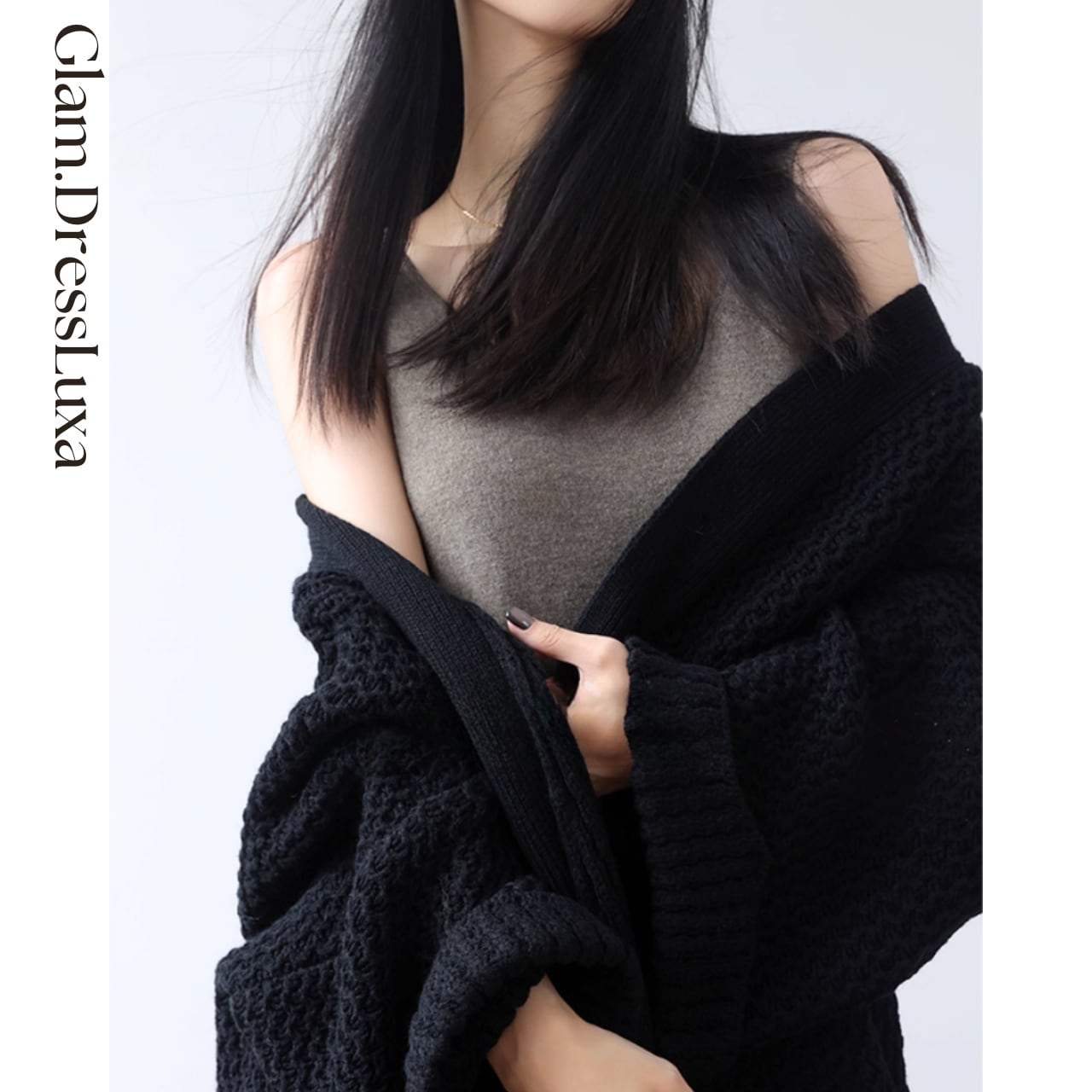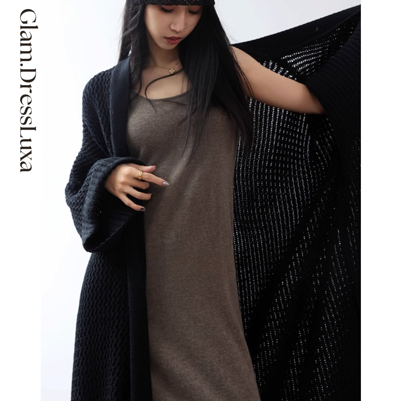 ・立体感のあるチャンキーニットを贅沢に使ったロングガウン。