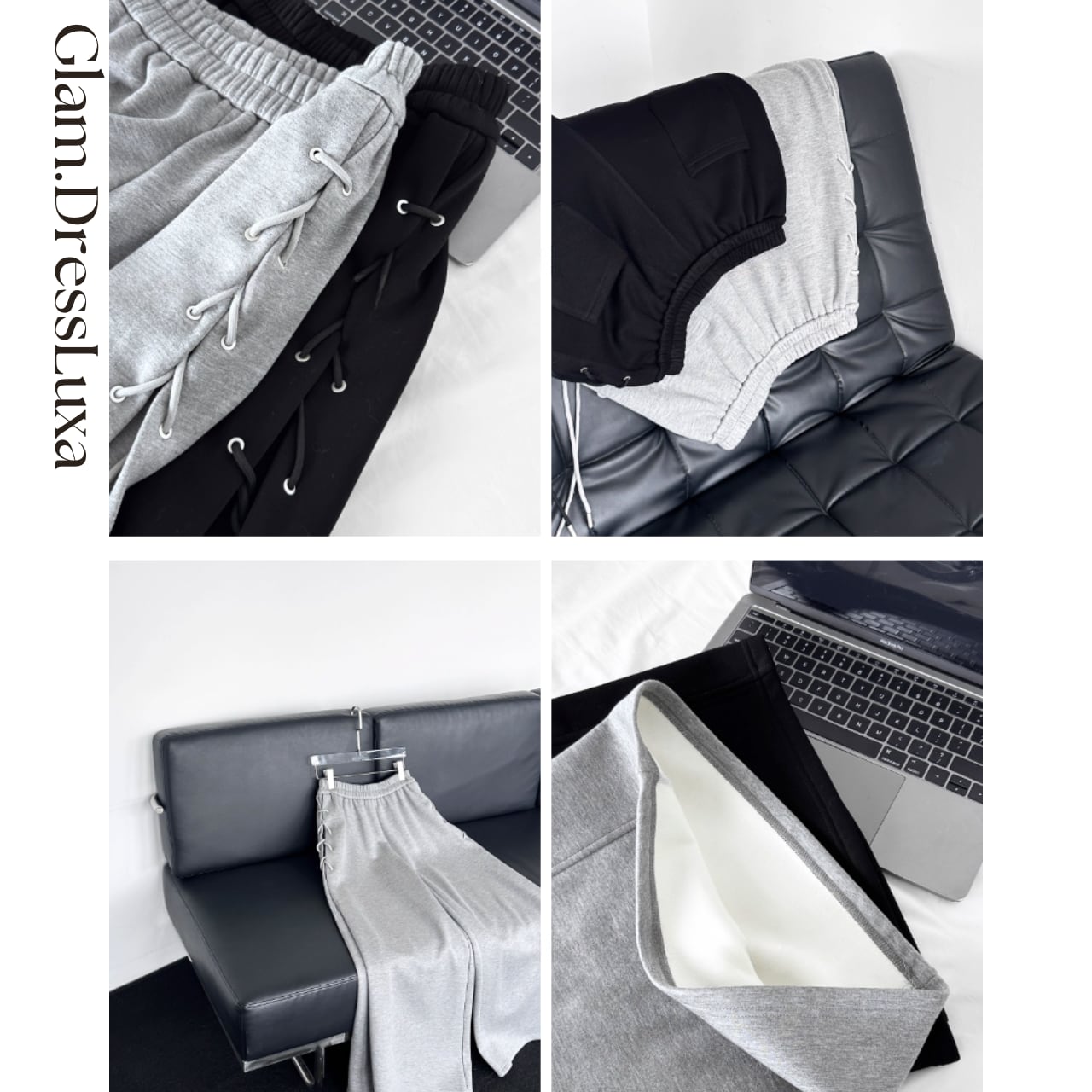 サイドレースアップがさりげないアクセントになり、シルエットに動きをプラス。