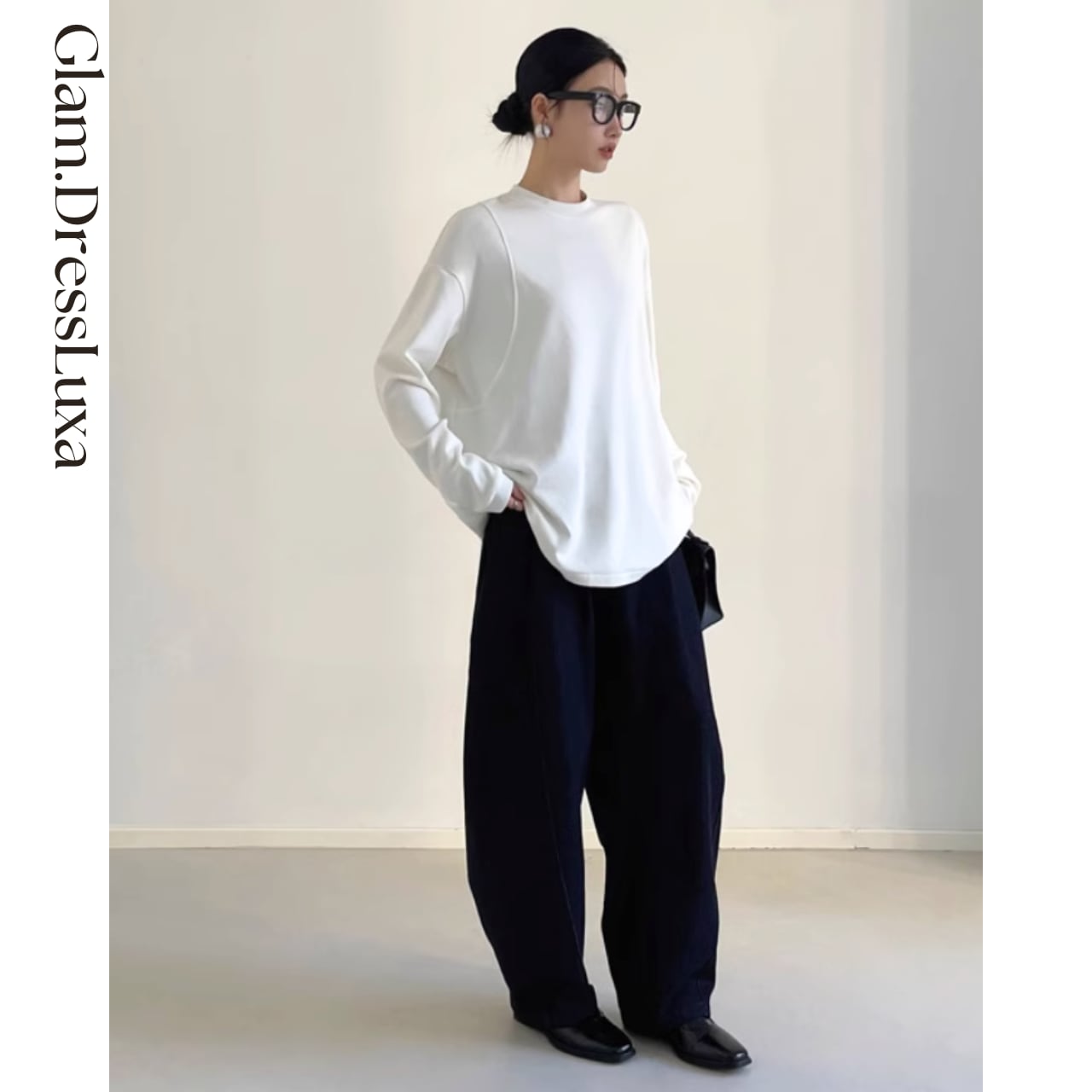 ゆるやかな丸みのあるシルエットが上品に落ち、ラフなスタイリングも洗練された印象に。