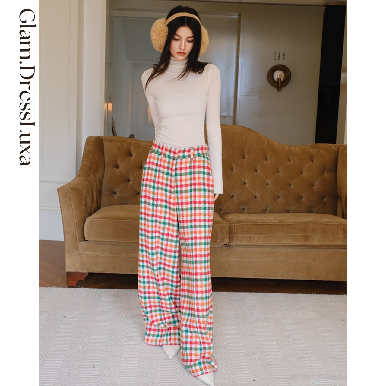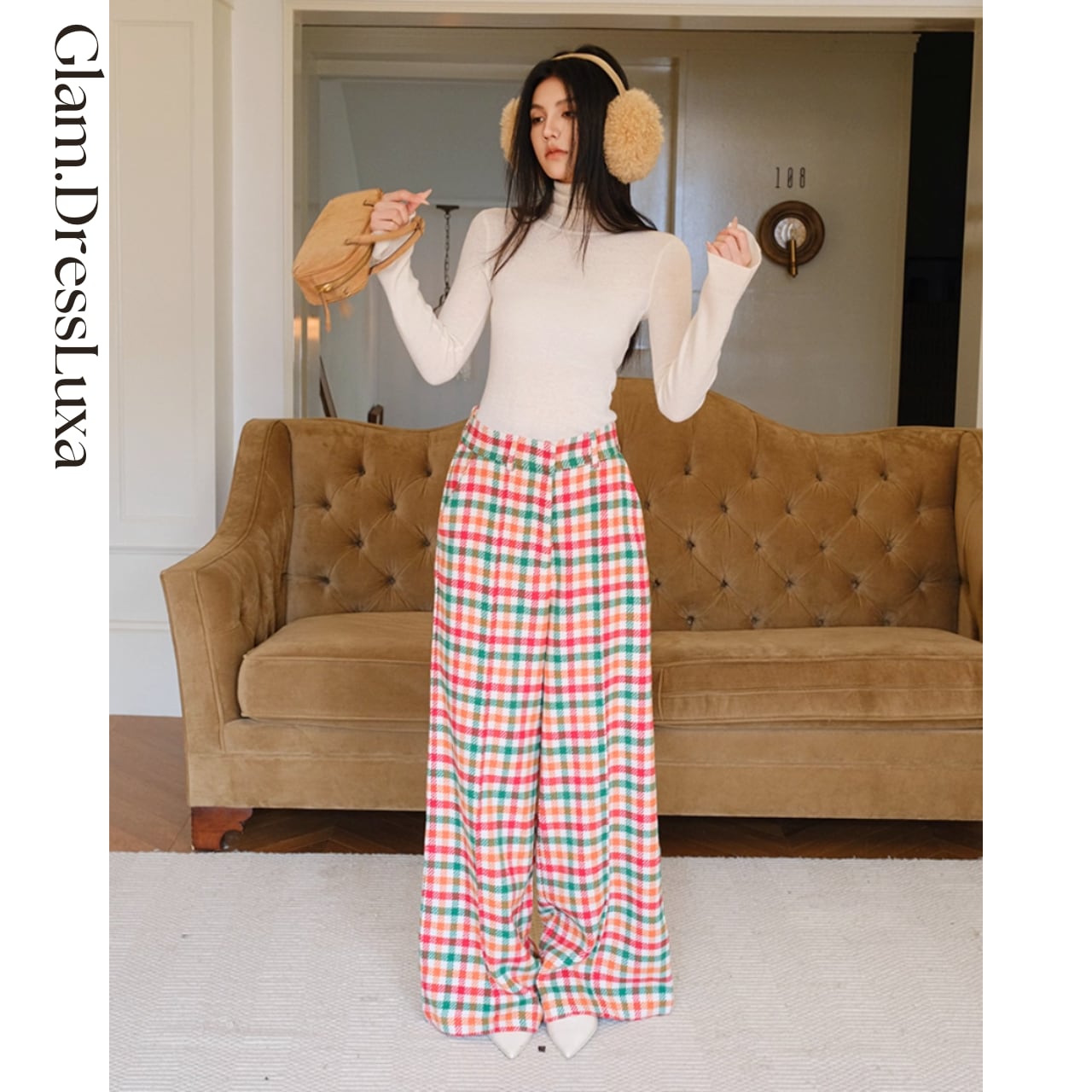 ・ほどよい厚みのチェック生地で仕立てたワイドパンツ。