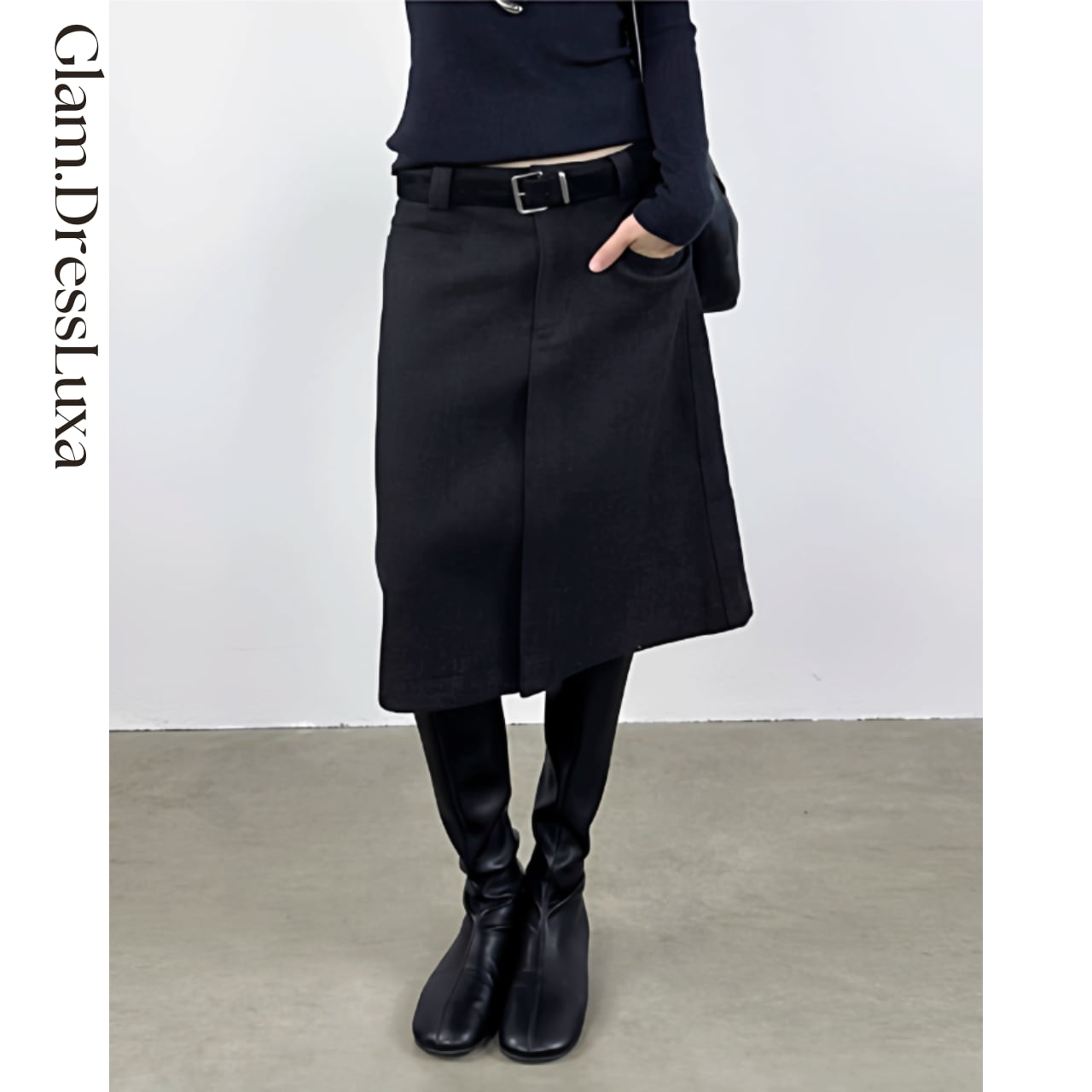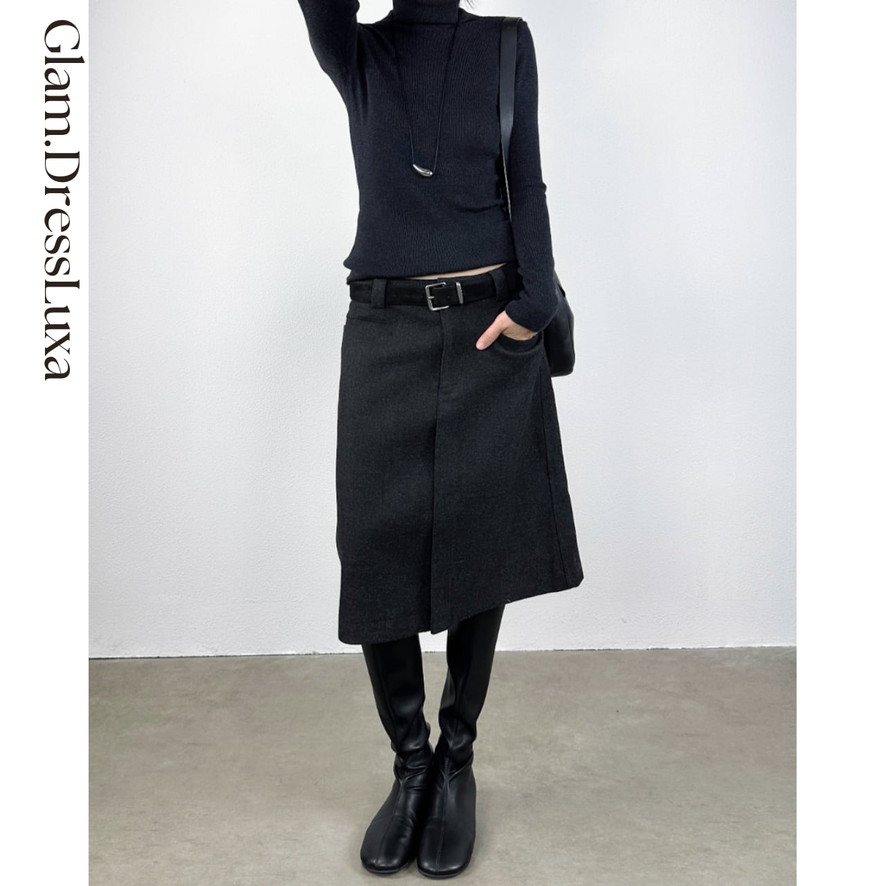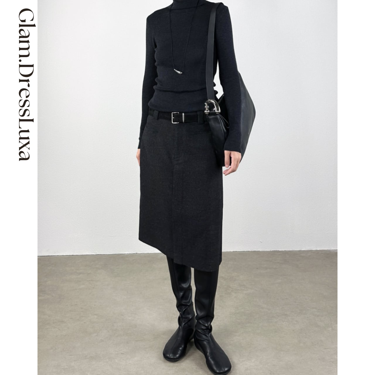 ミニマルなデザインながら、素材の風合いがしっかり引き立つ上質スカートです。