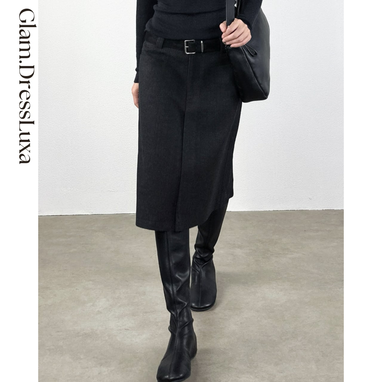 フロントの控えめなスリットが抜け感を与え、ロングブーツとも相性◎