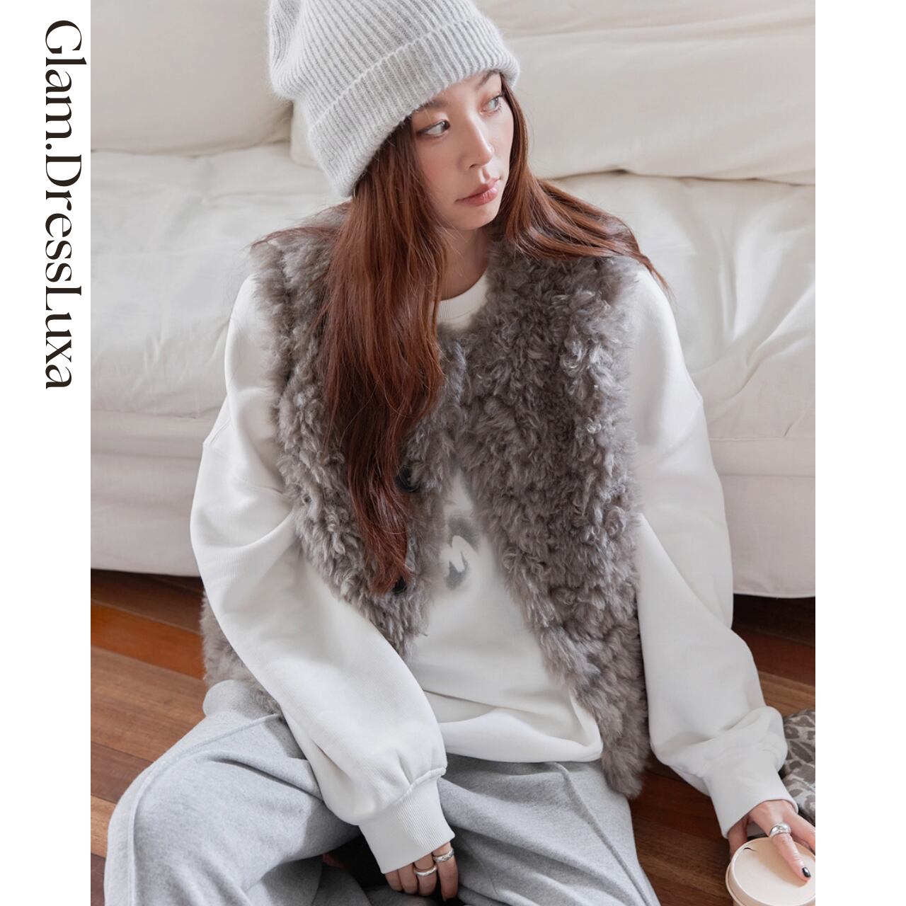 柔らかな毛並みが季節感を引き寄せ、シンプルなカジュアルコーデに上品な温もりをプラスします。
