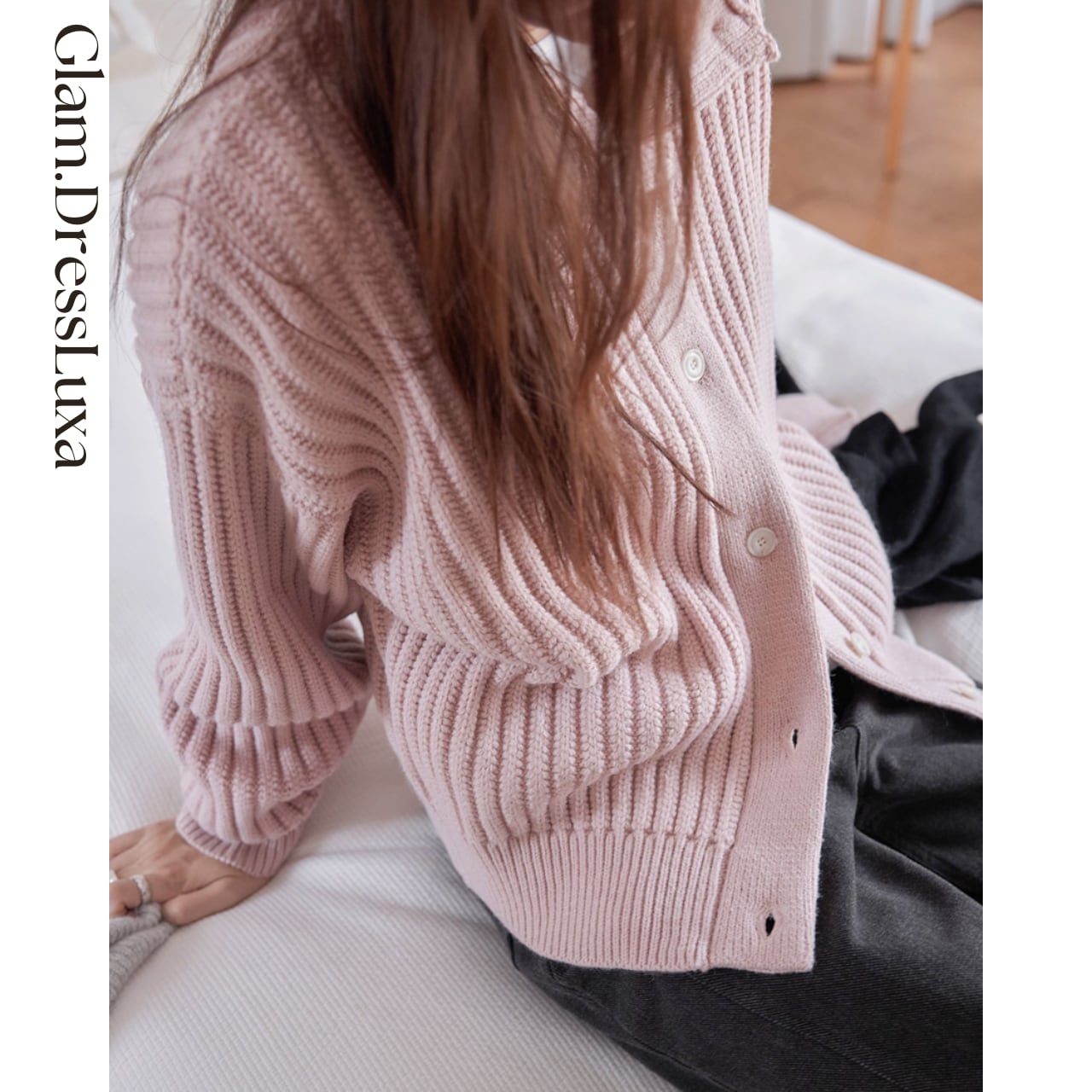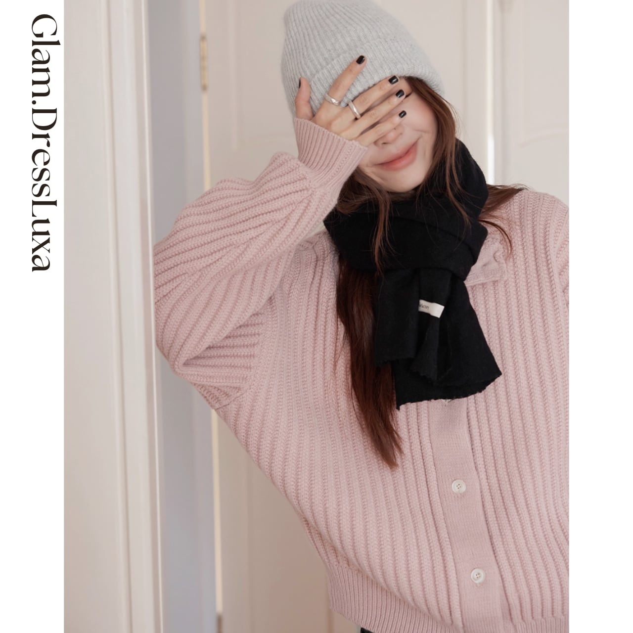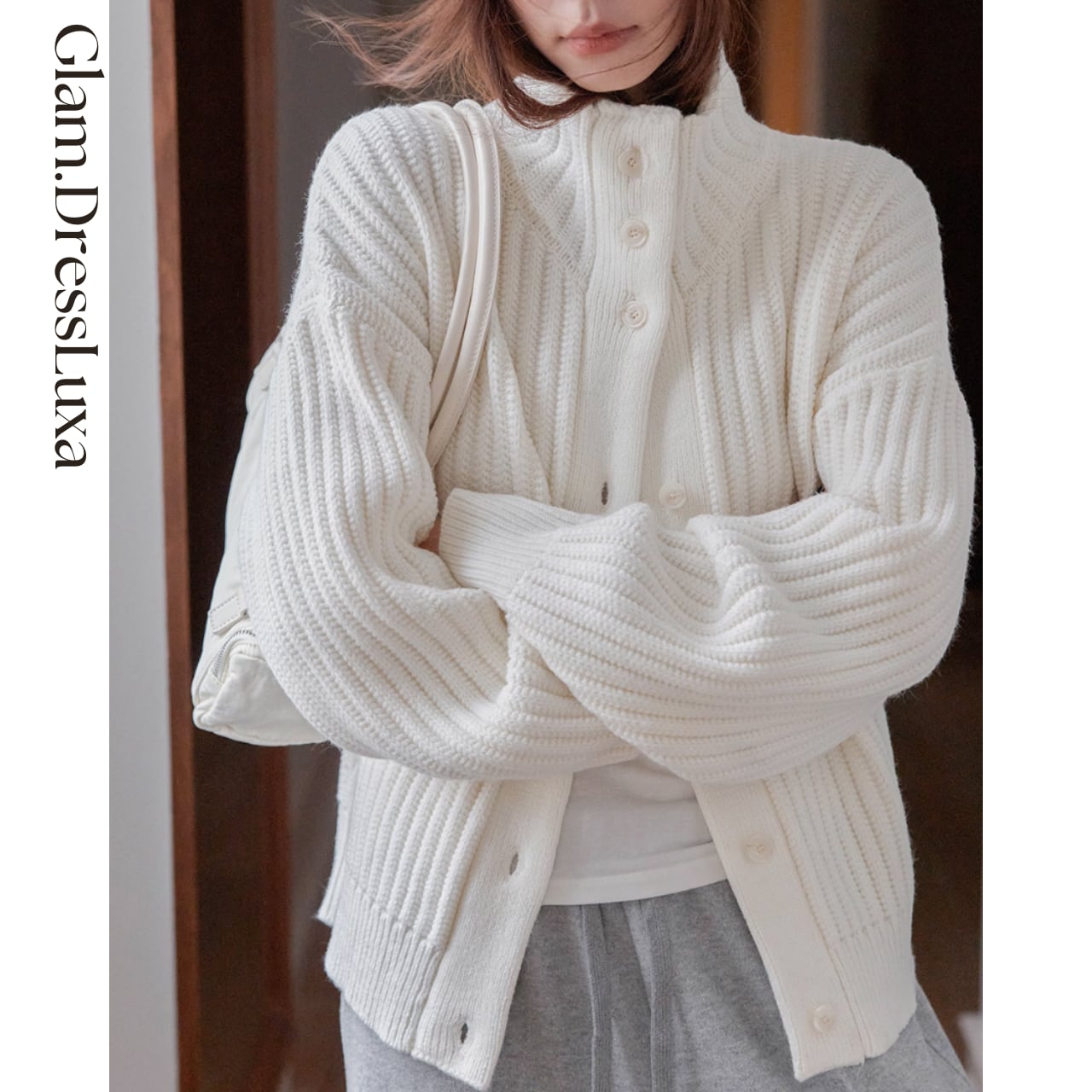 ・立体感のあるリブ編みが魅力のハイネックカーディガン。