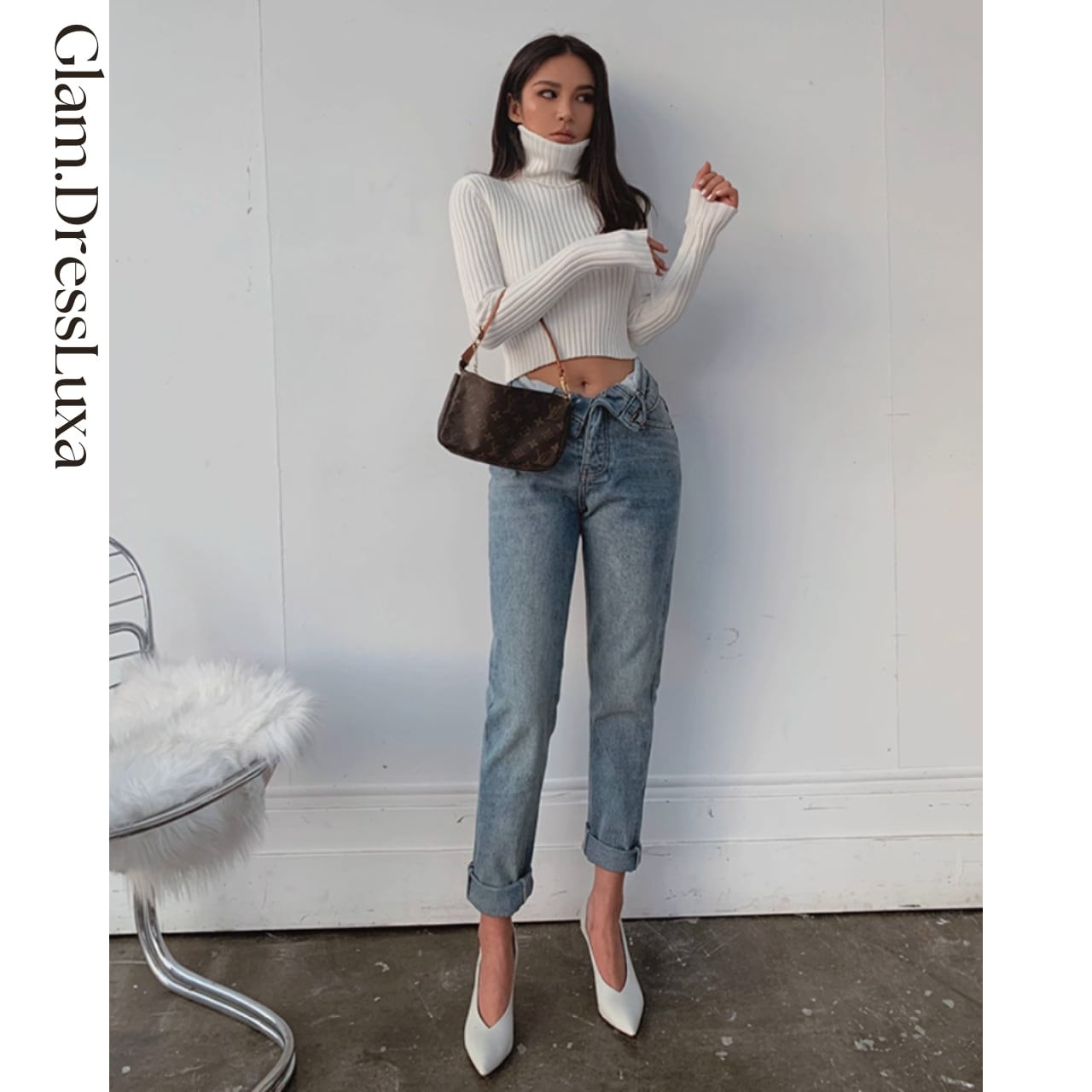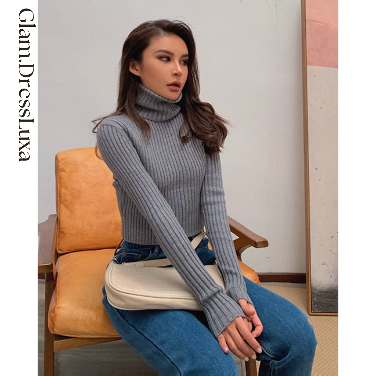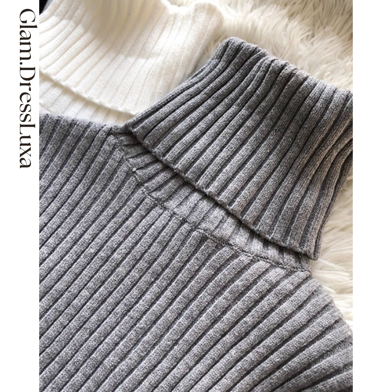 ・ほどよいフィット感でラインを綺麗に見せるリブタートルニット。