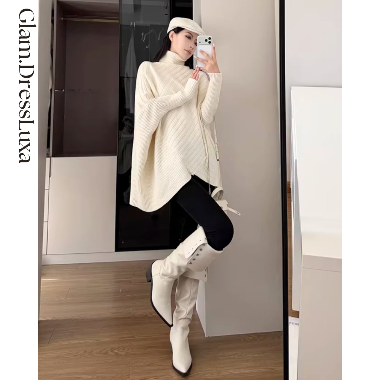 スカートは縦ラインを強調するリブ編みで、自然とスタイルアップを叶えます。