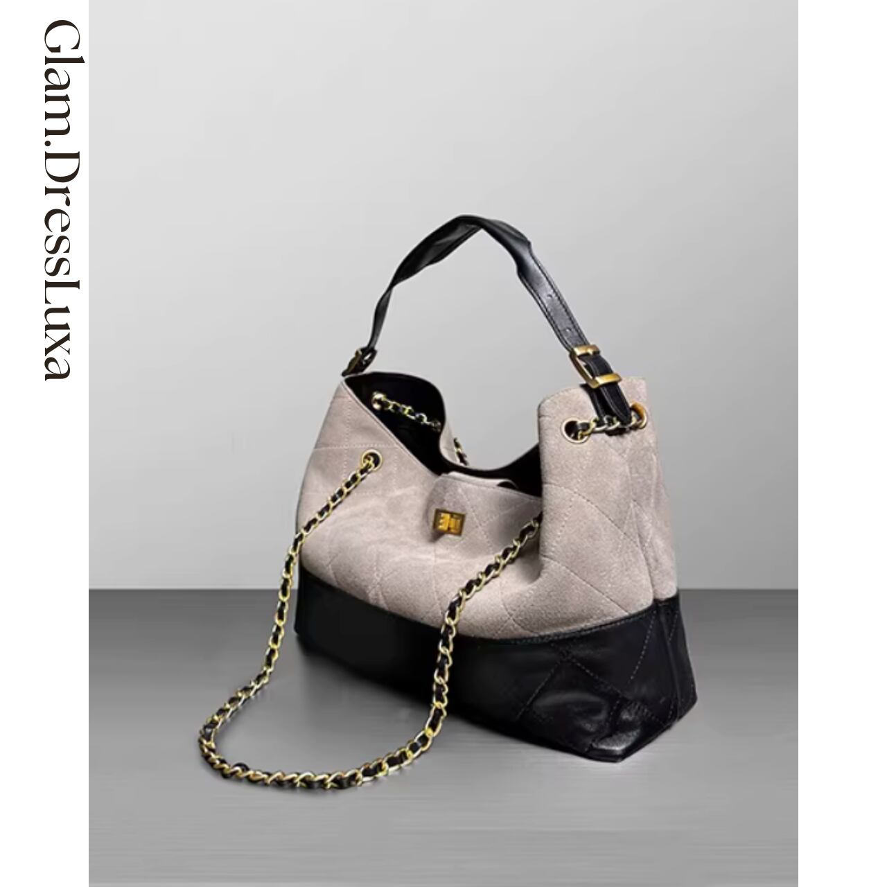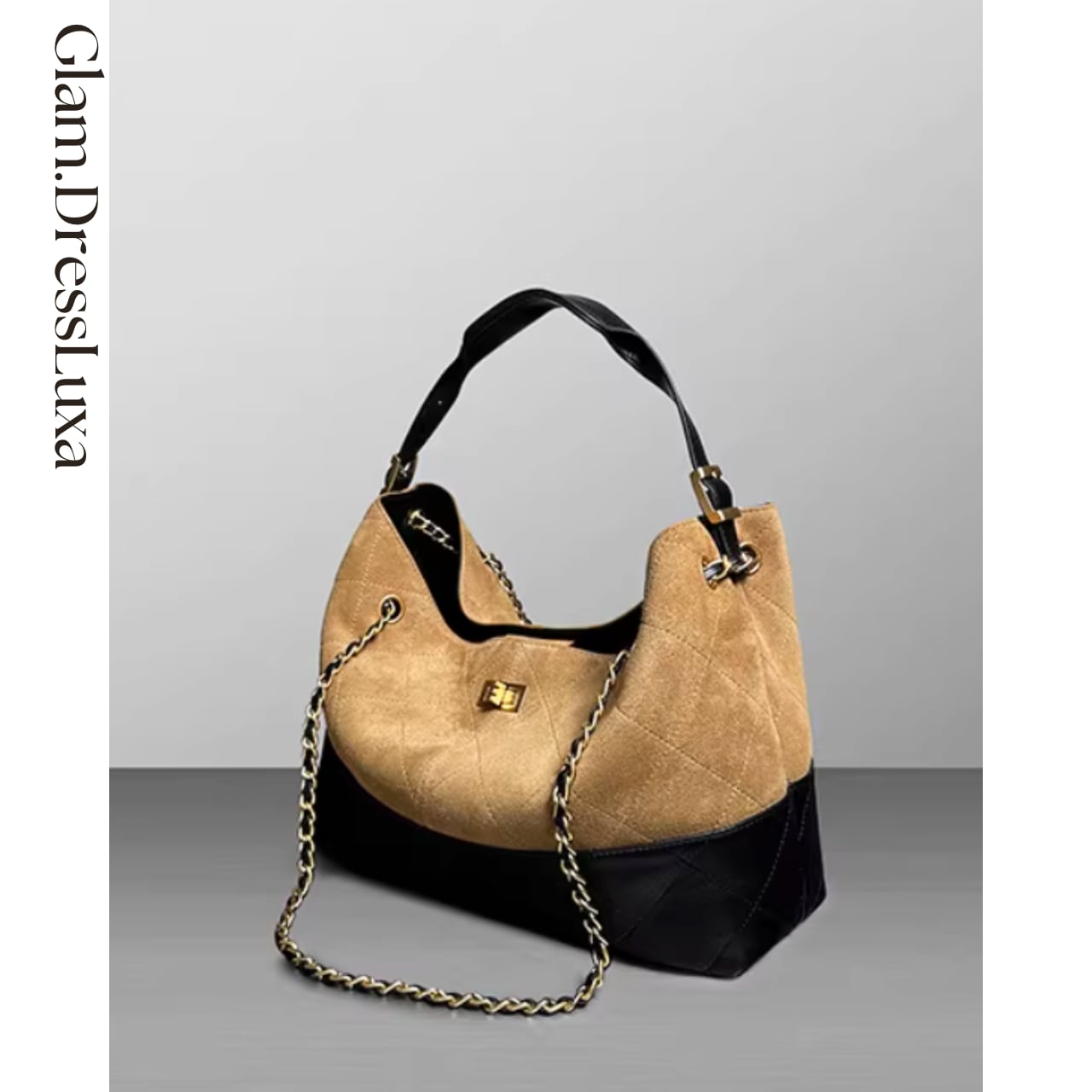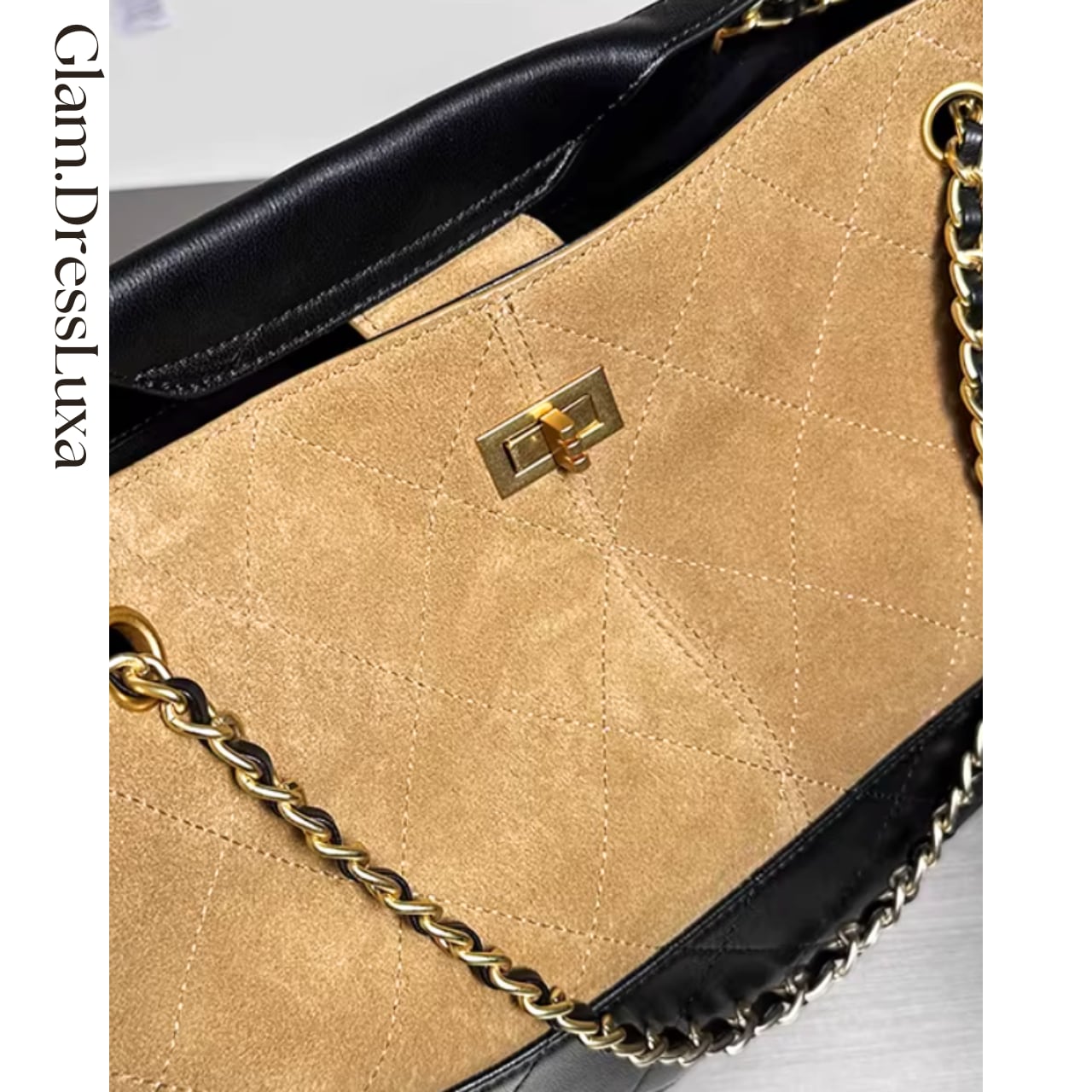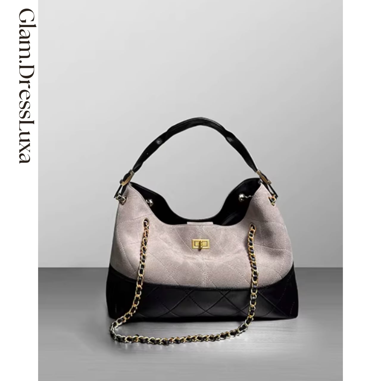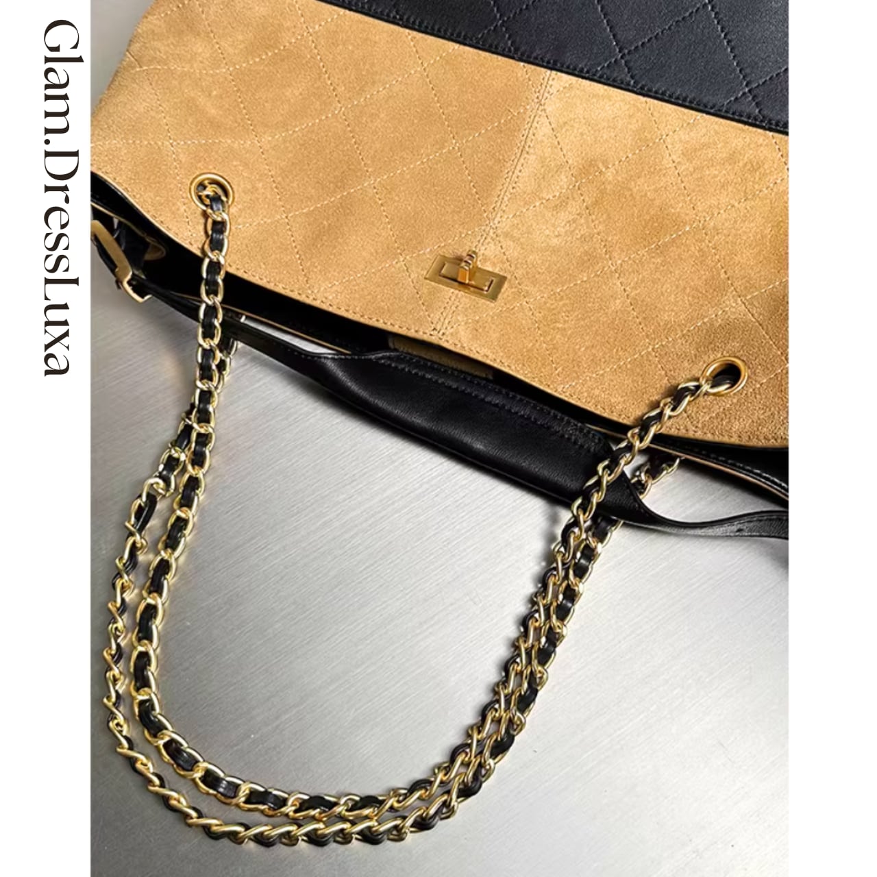 ・スエード調の上質な質感に、キルティング切替を効かせた存在感のあるデザイン。