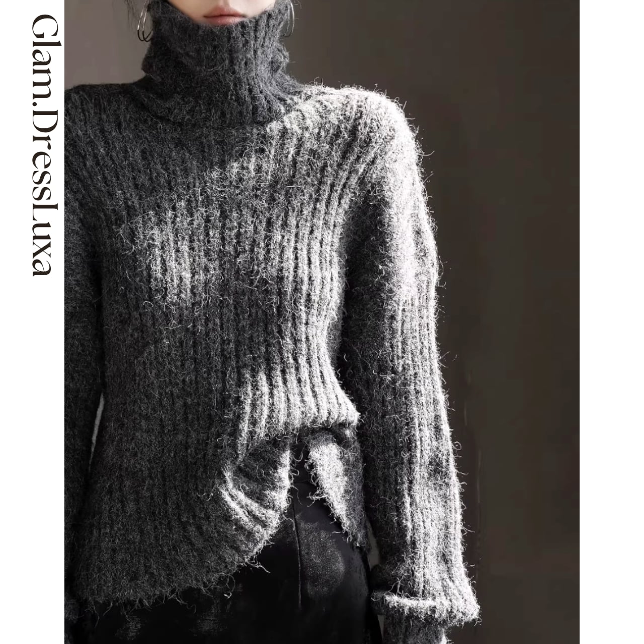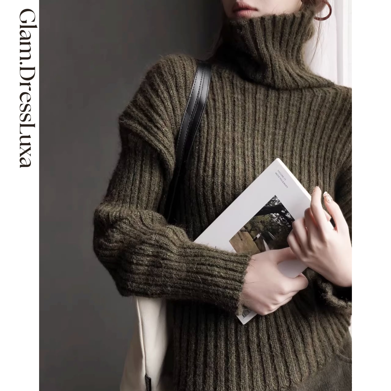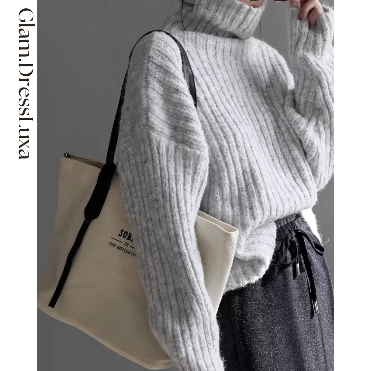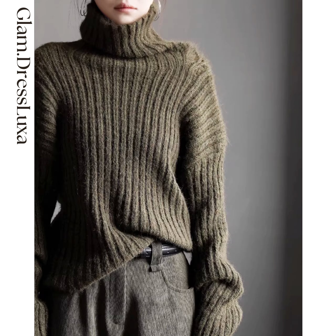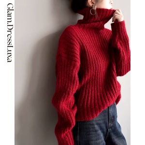 ・ふんわりと起毛感のあるリブ編みが、女性らしい柔らかさを引き立てるタートルネックニット。