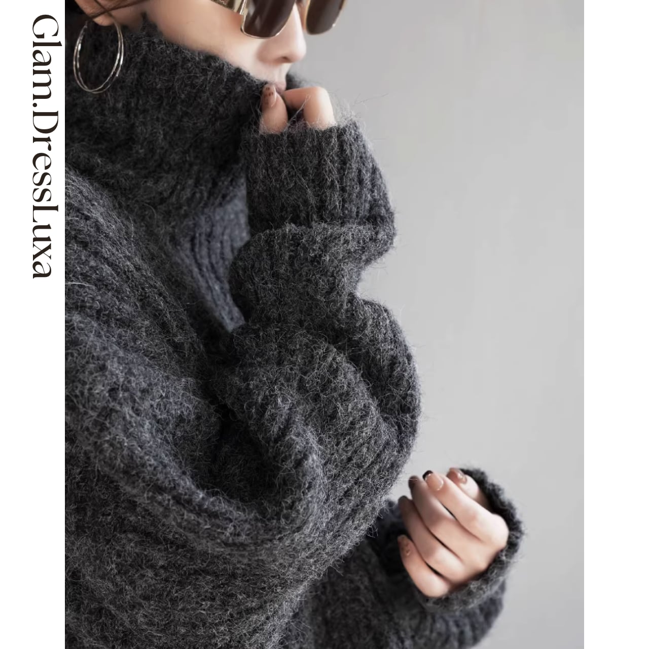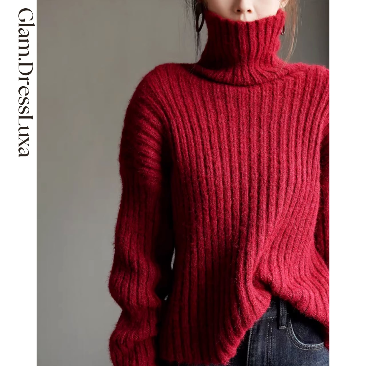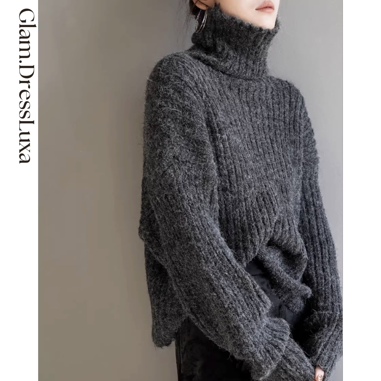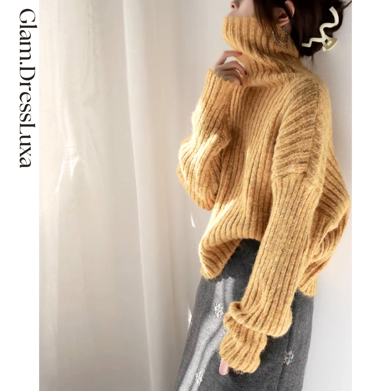 ・ふんわりと起毛感のあるリブ編みが、女性らしい柔らかさを引き立てるタートルネックニット。