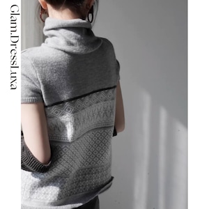 タートルネックニットトップス。