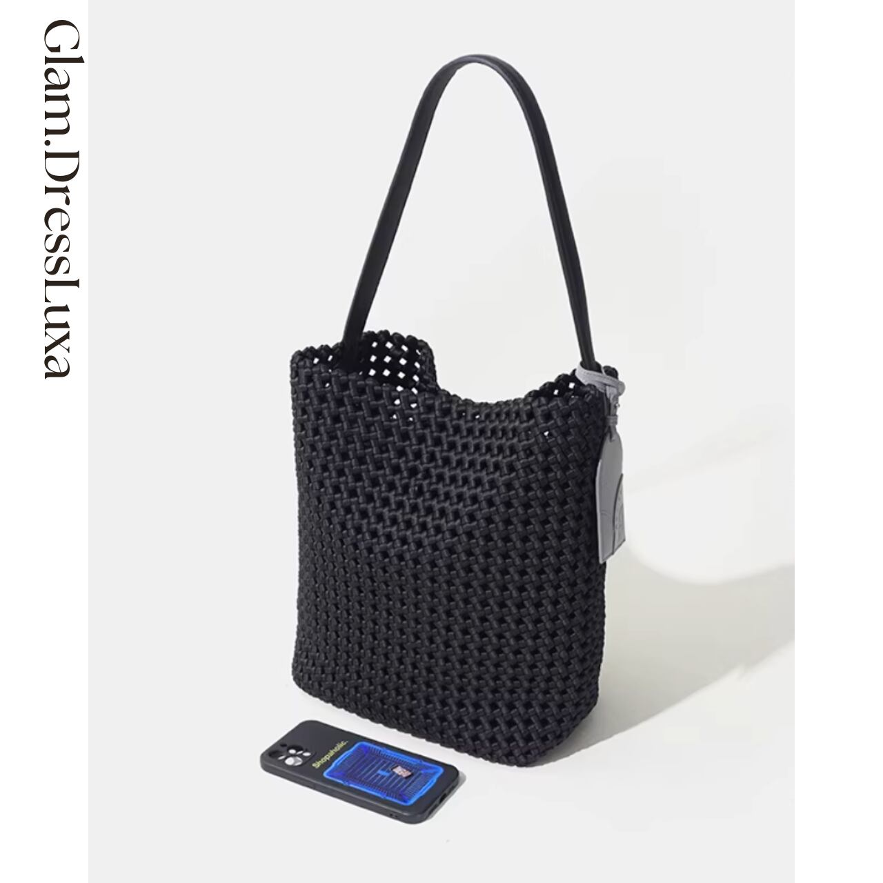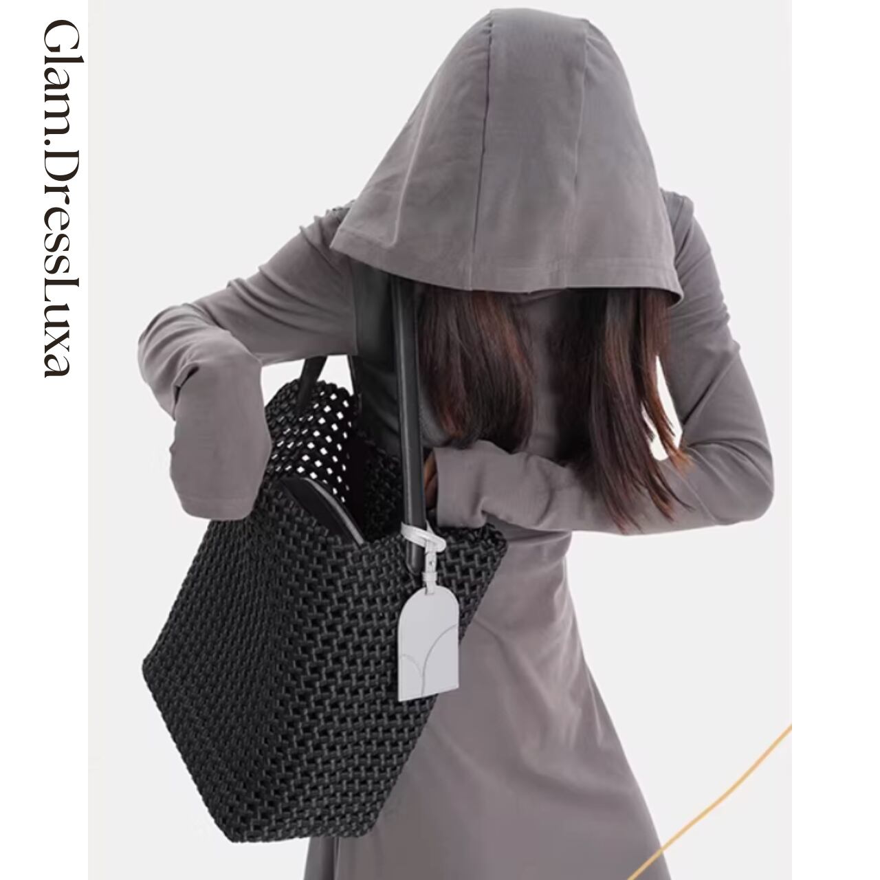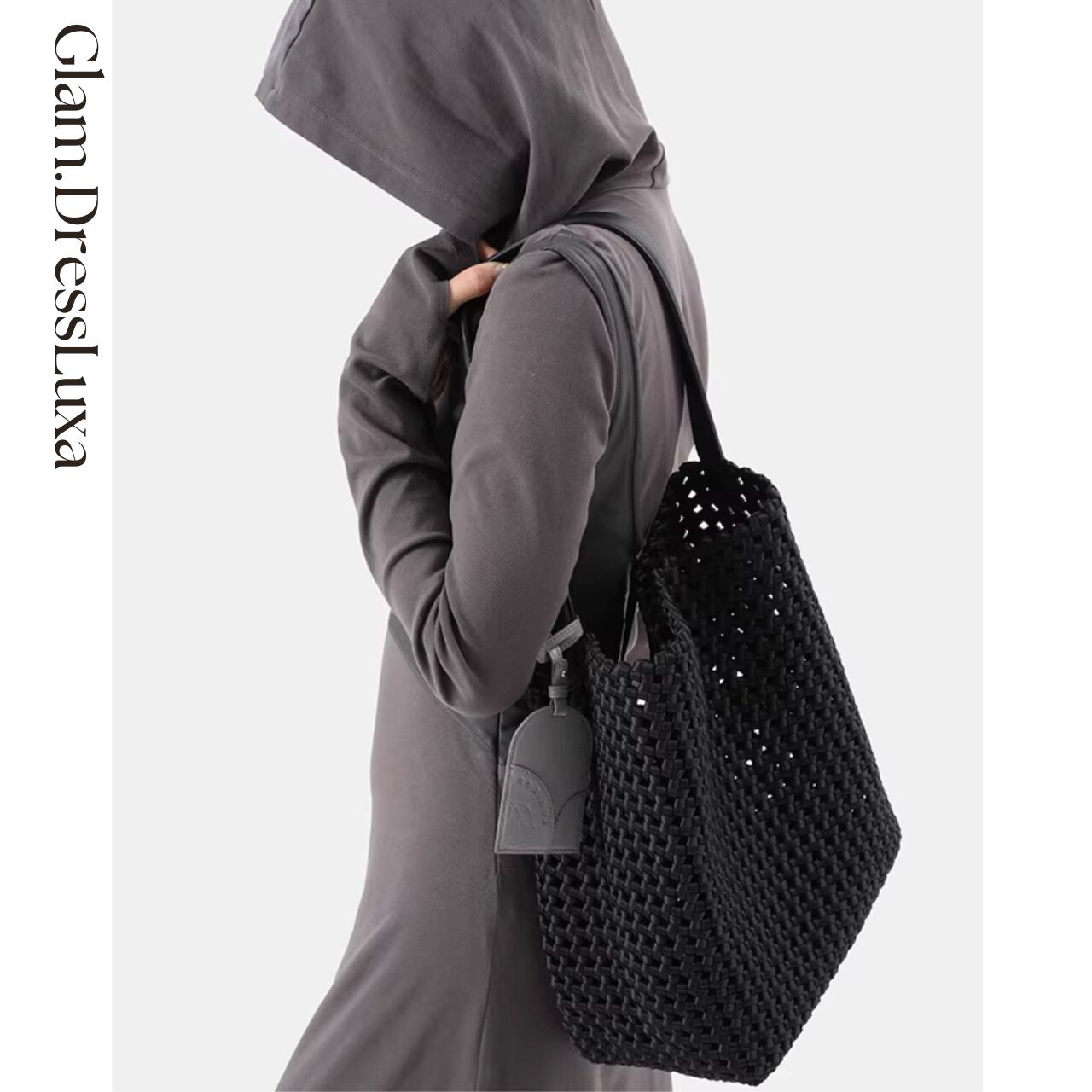 ・立体感のある編み込みデザインが目を引くトートバッグ。