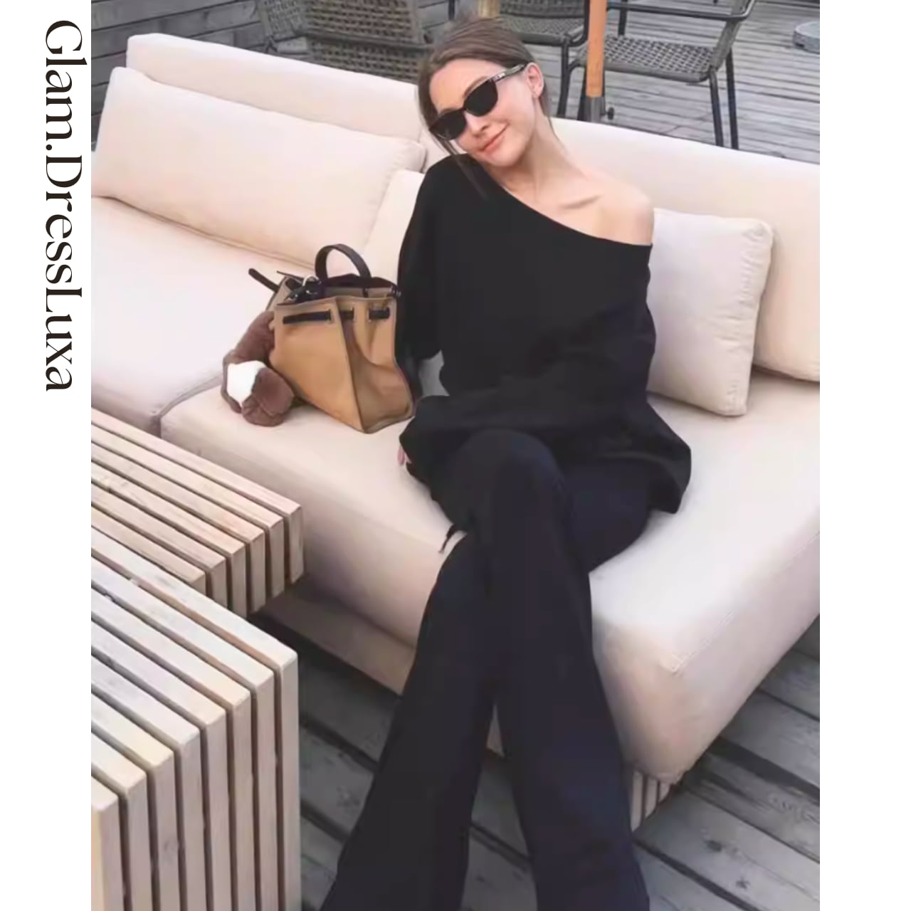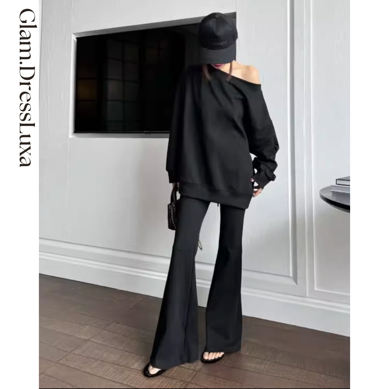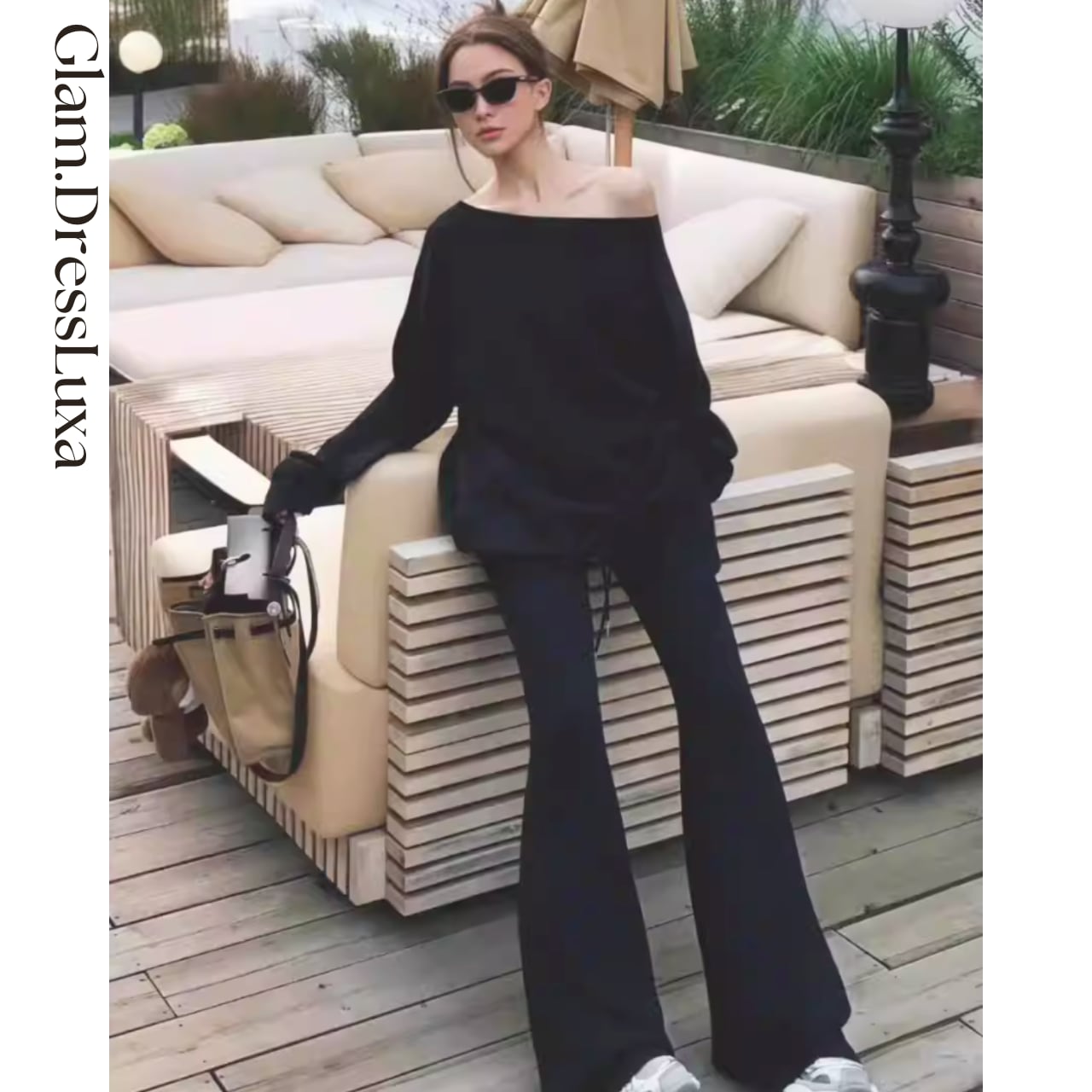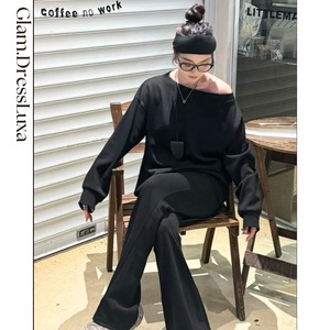 美脚ラインを引き立てるフレアパンツのセットアップ。