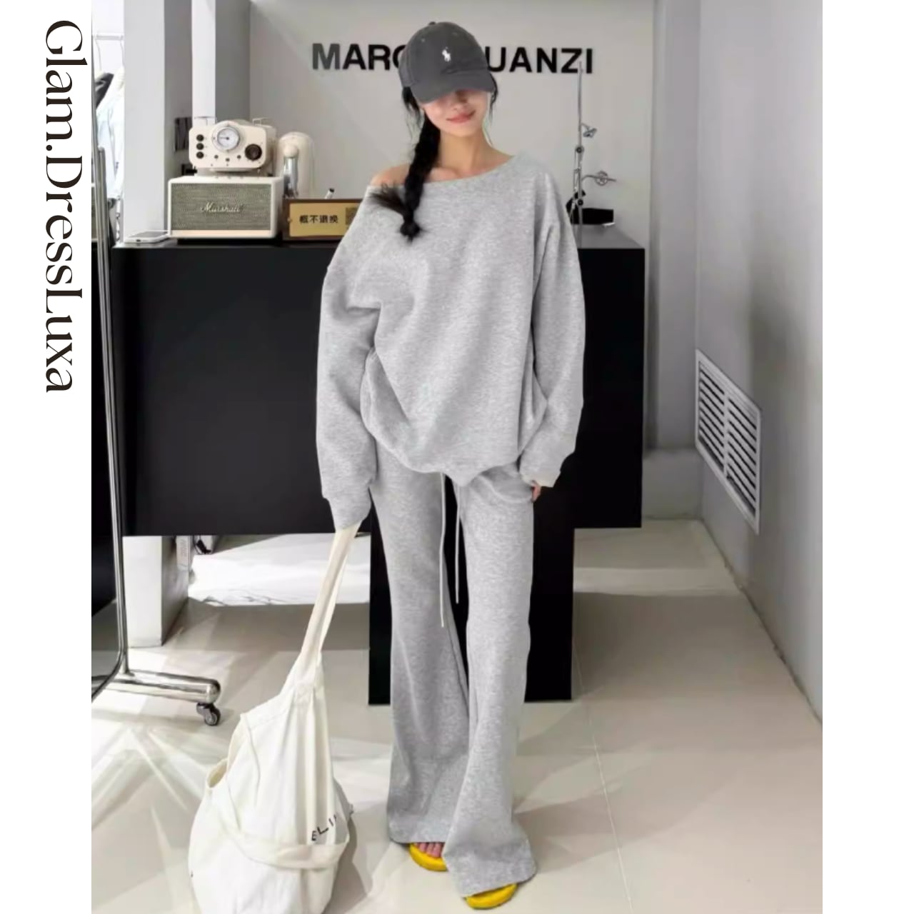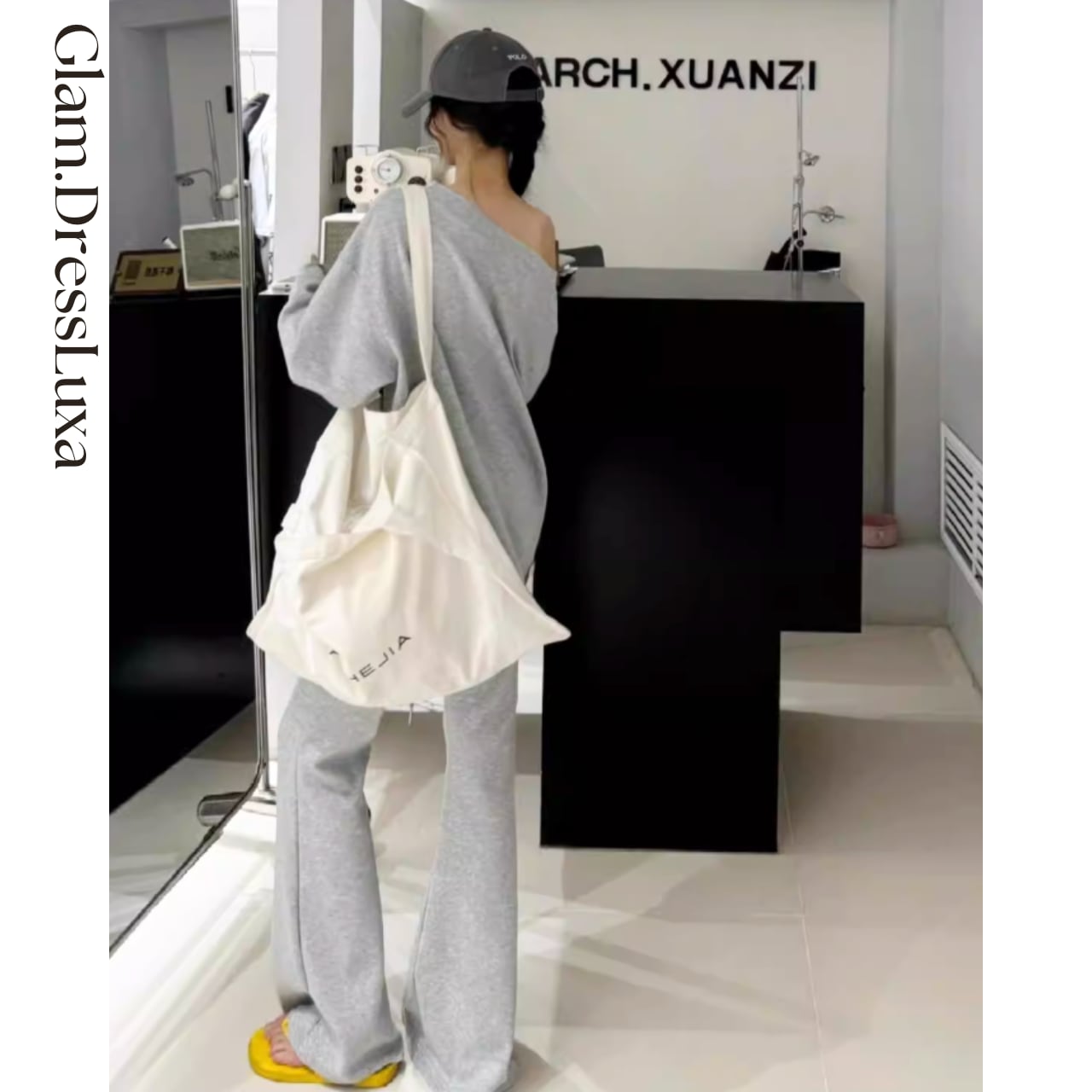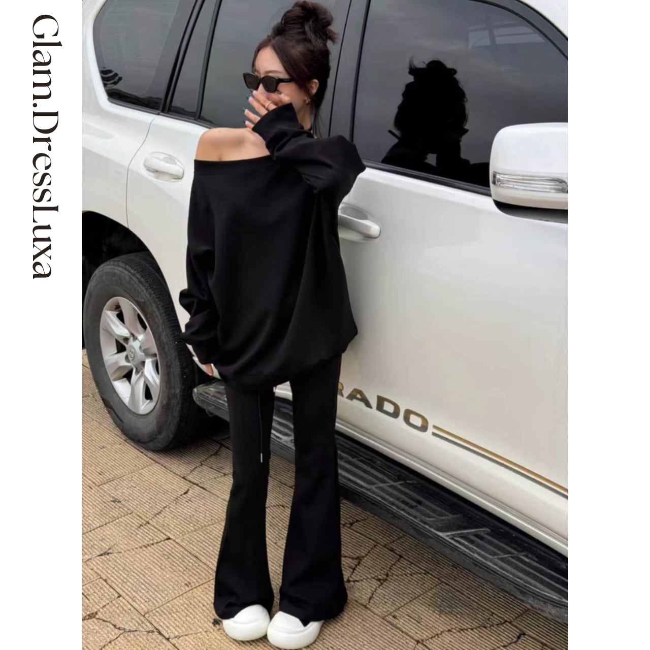 美脚ラインを引き立てるフレアパンツのセットアップ。