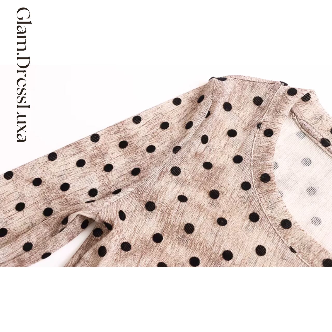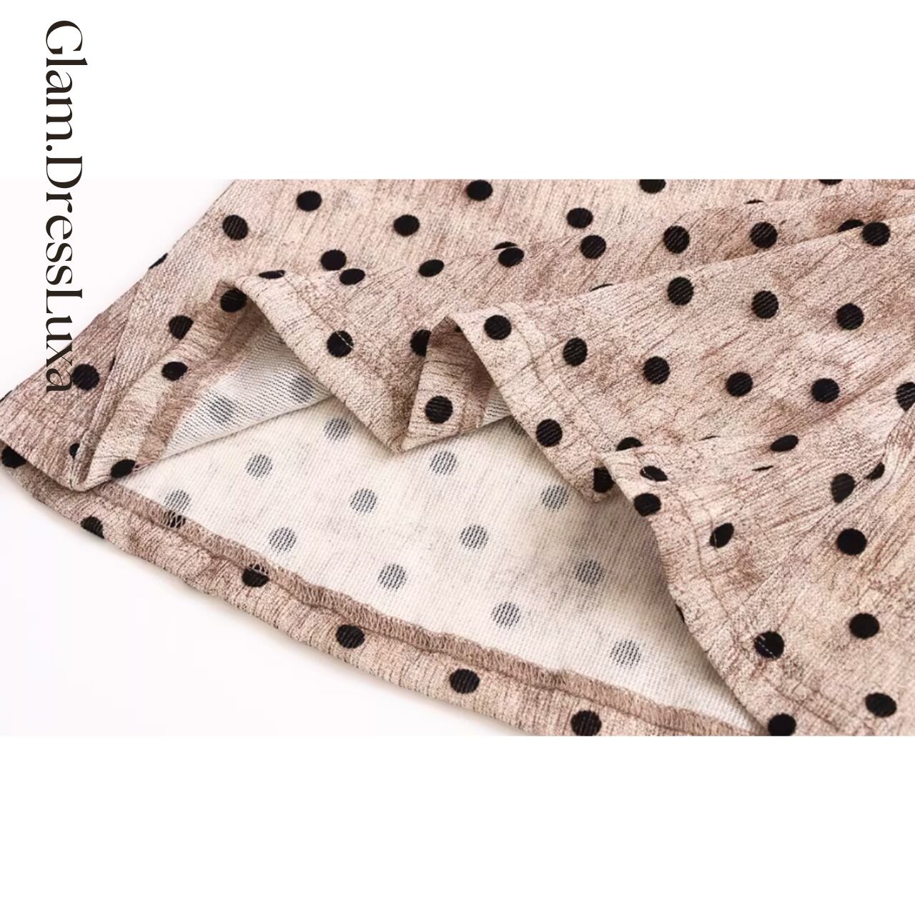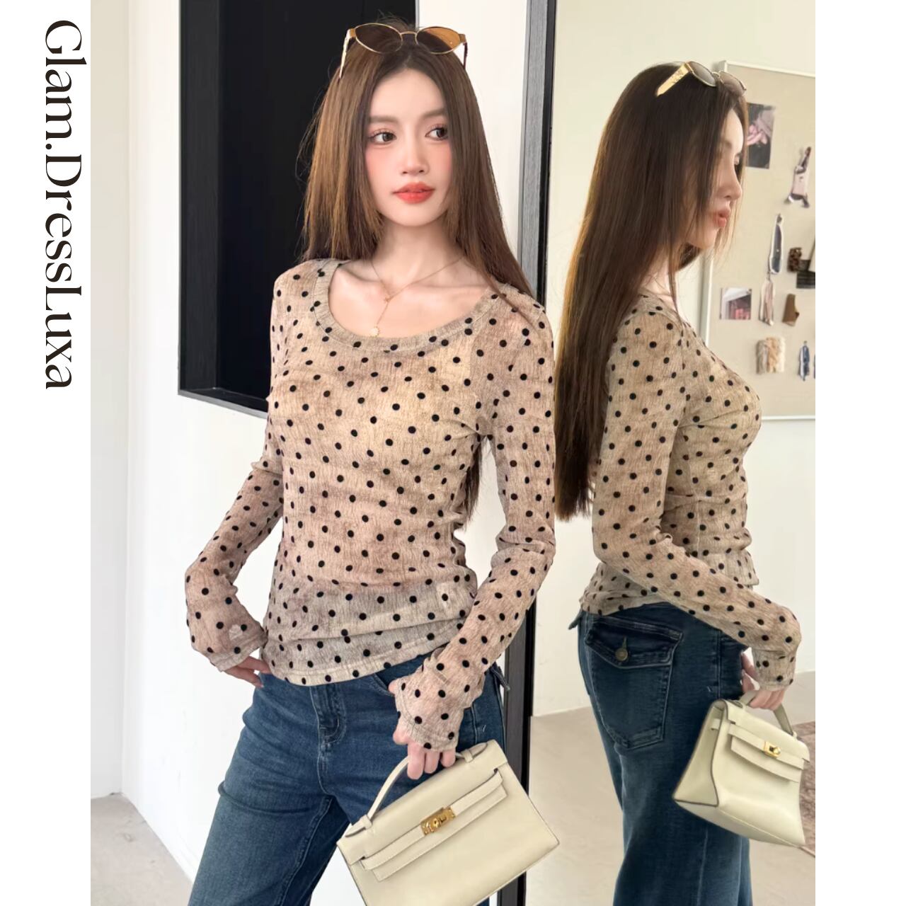柔らかく肌に馴染むベージュに、細かいドットを散りばめたフェミニンな一枚。