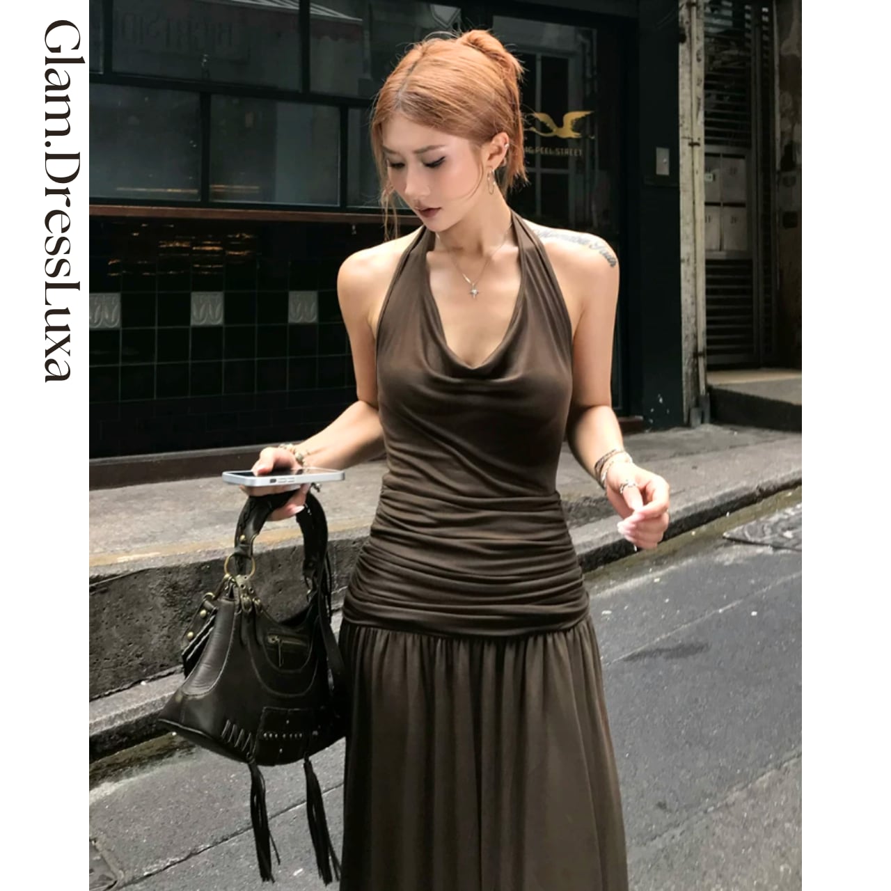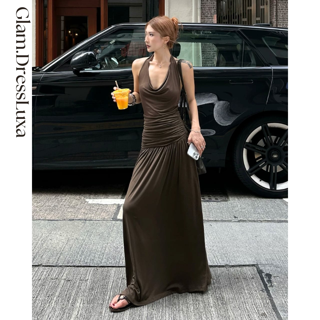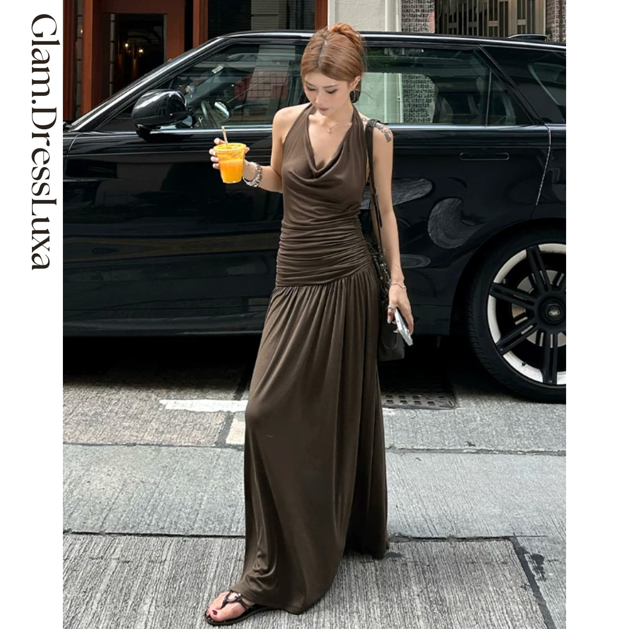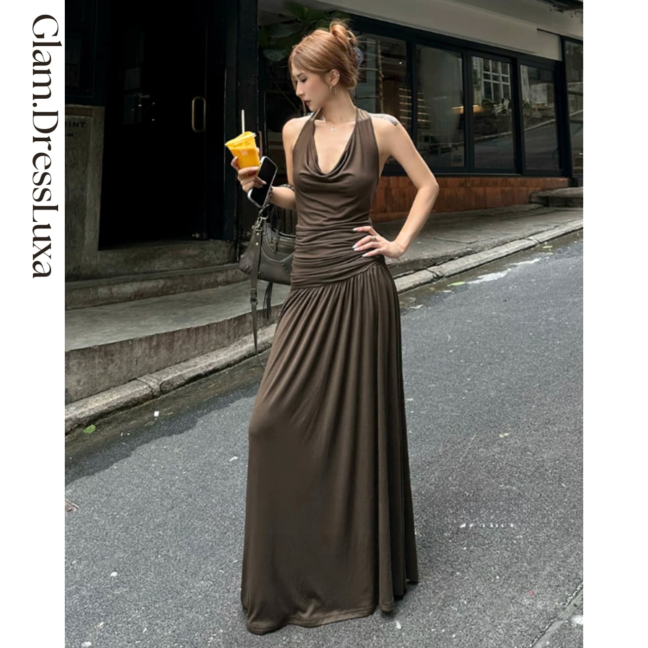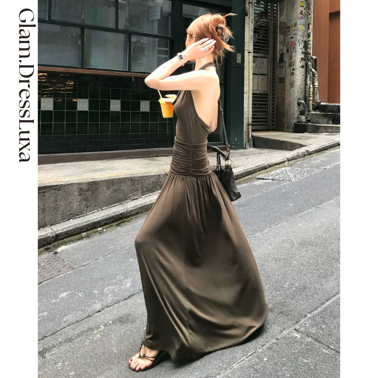 バックスタイルは大胆に開いたデザインで、抜け感と女性らしさを引き立てます。