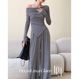 ネックとボトムのドレープが美しい着心地抜群のセットアップ。