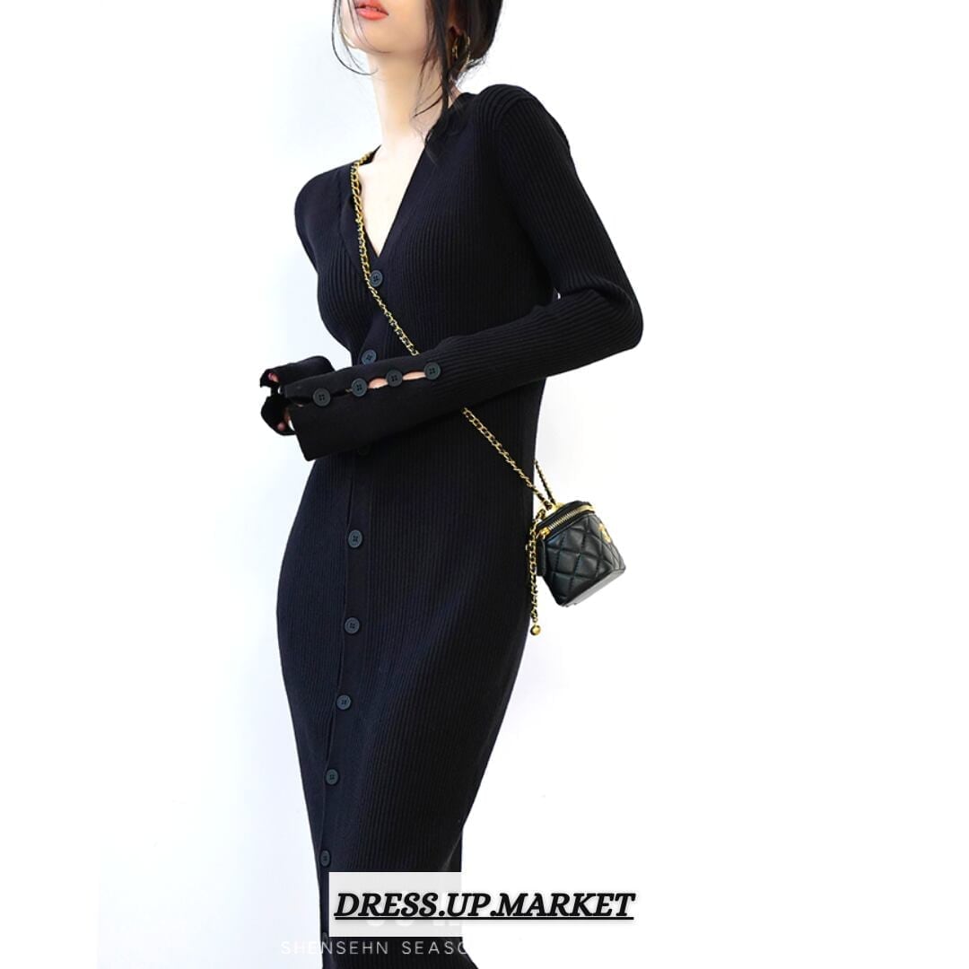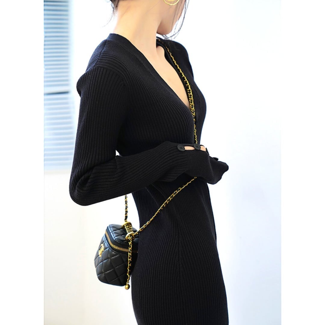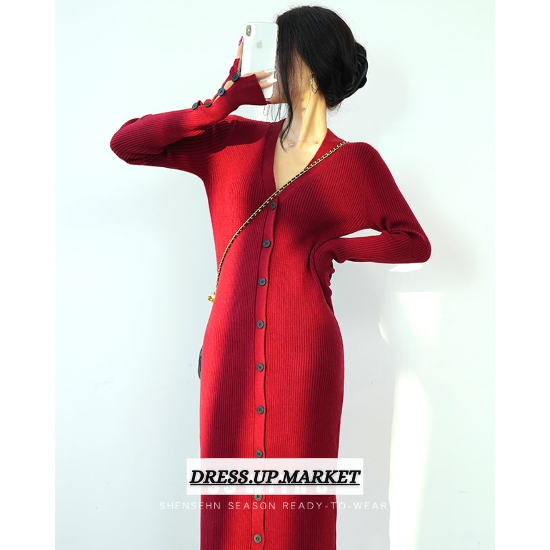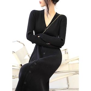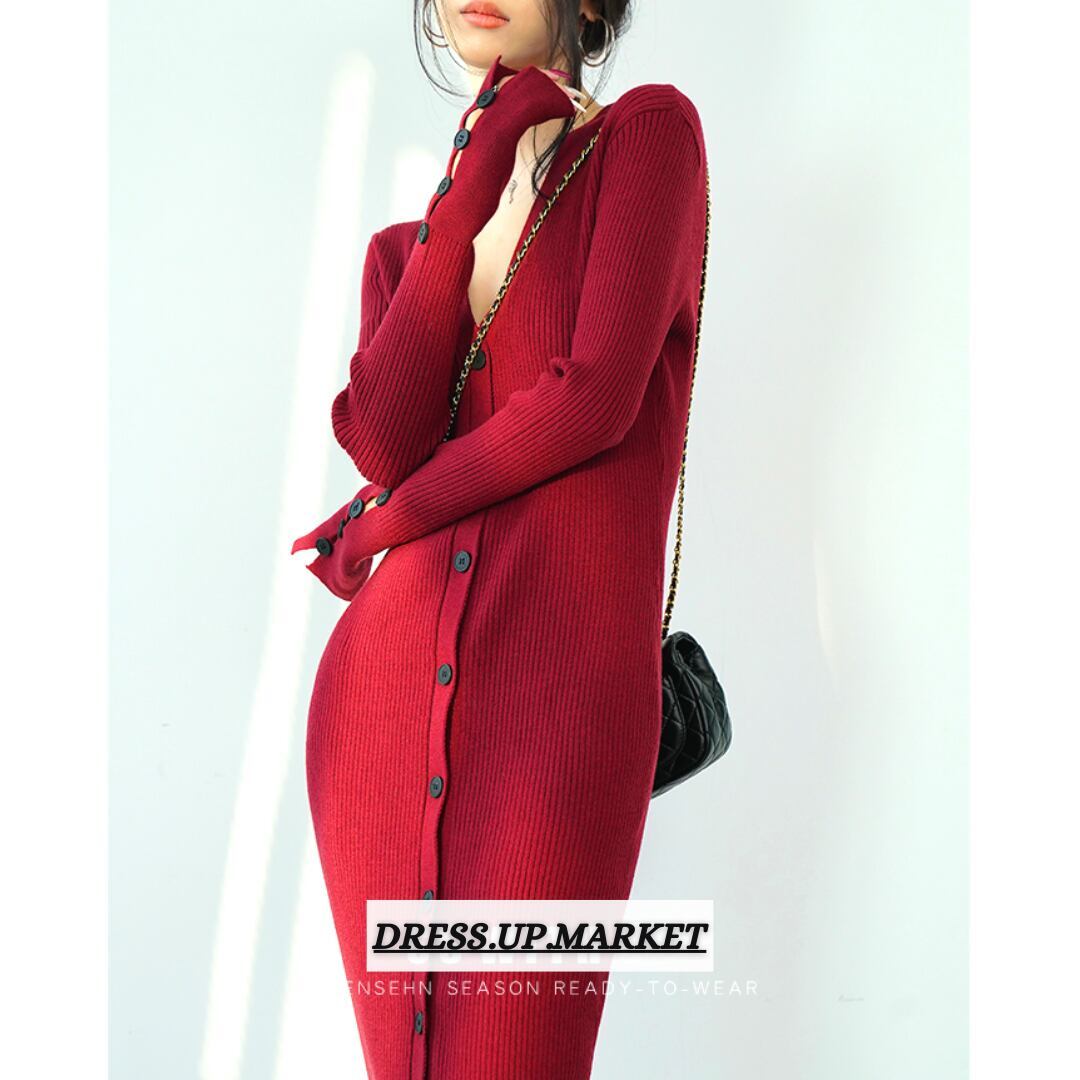前ボタン タイトロングワンピース/2color_W44