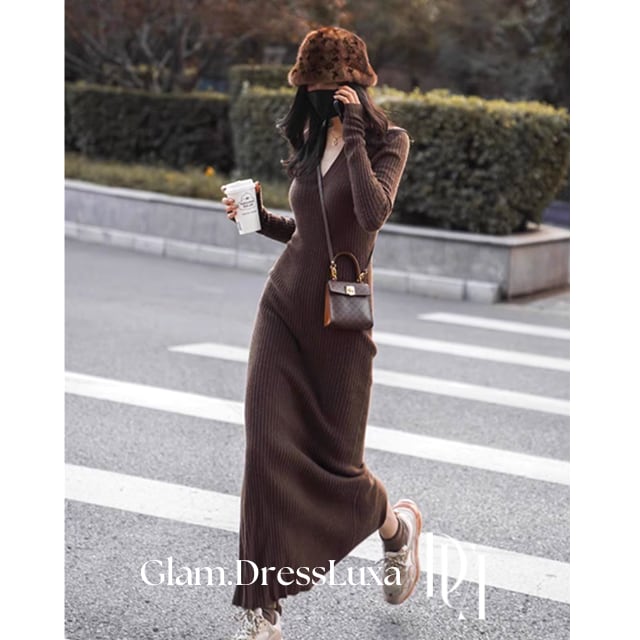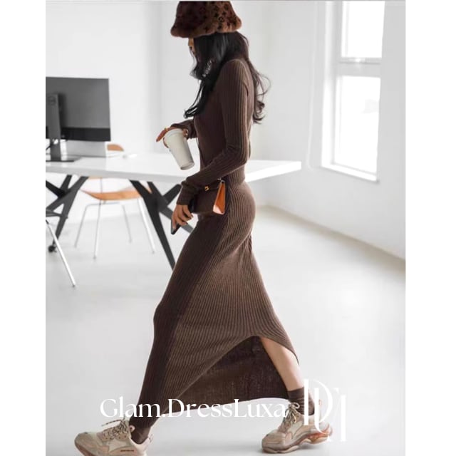 スリット タイトリブニットワンピース/2color_W262