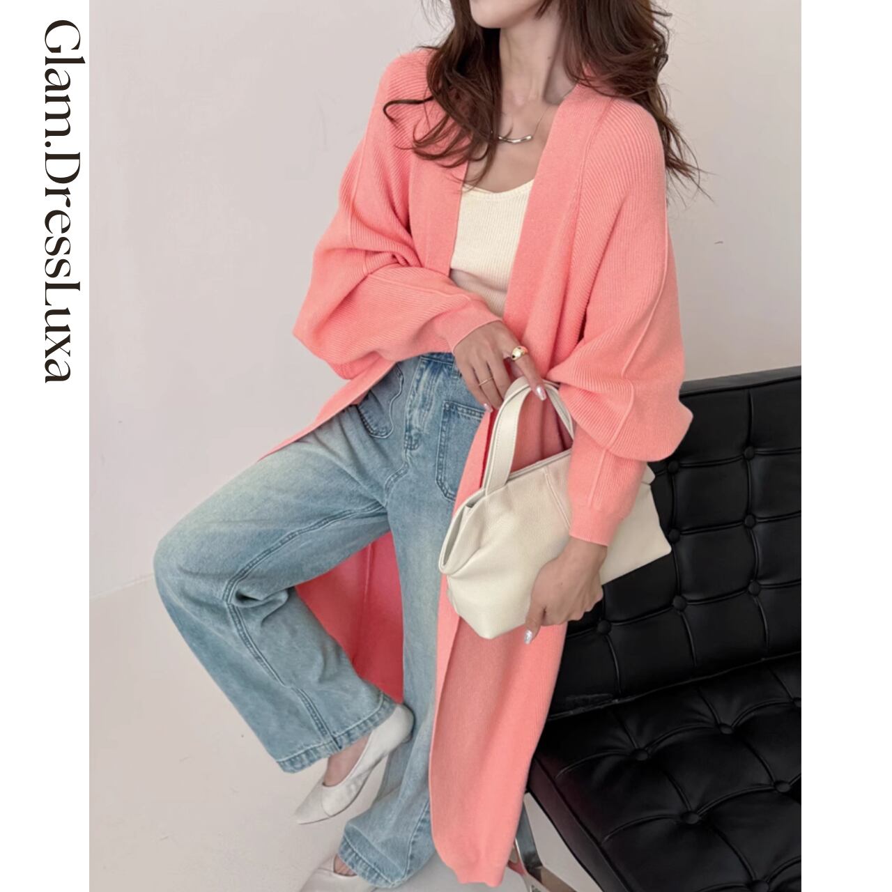 リブニット ルーズロング カーディガン/3color_T1085