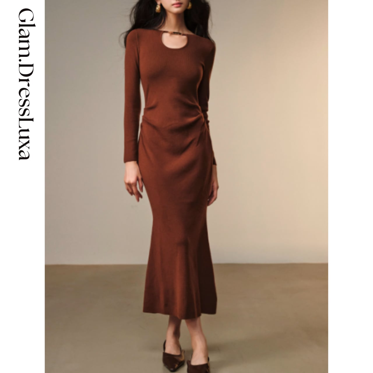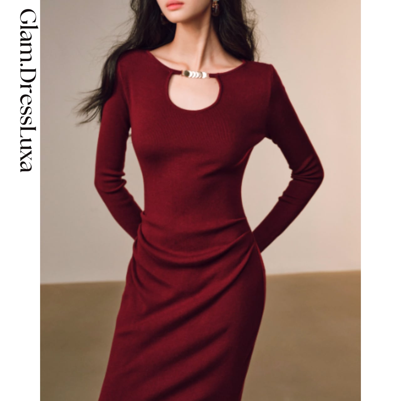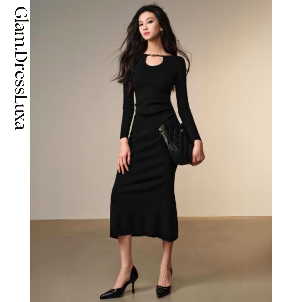 コインチェーン オープンネック タイトニットドレス/3color_W778