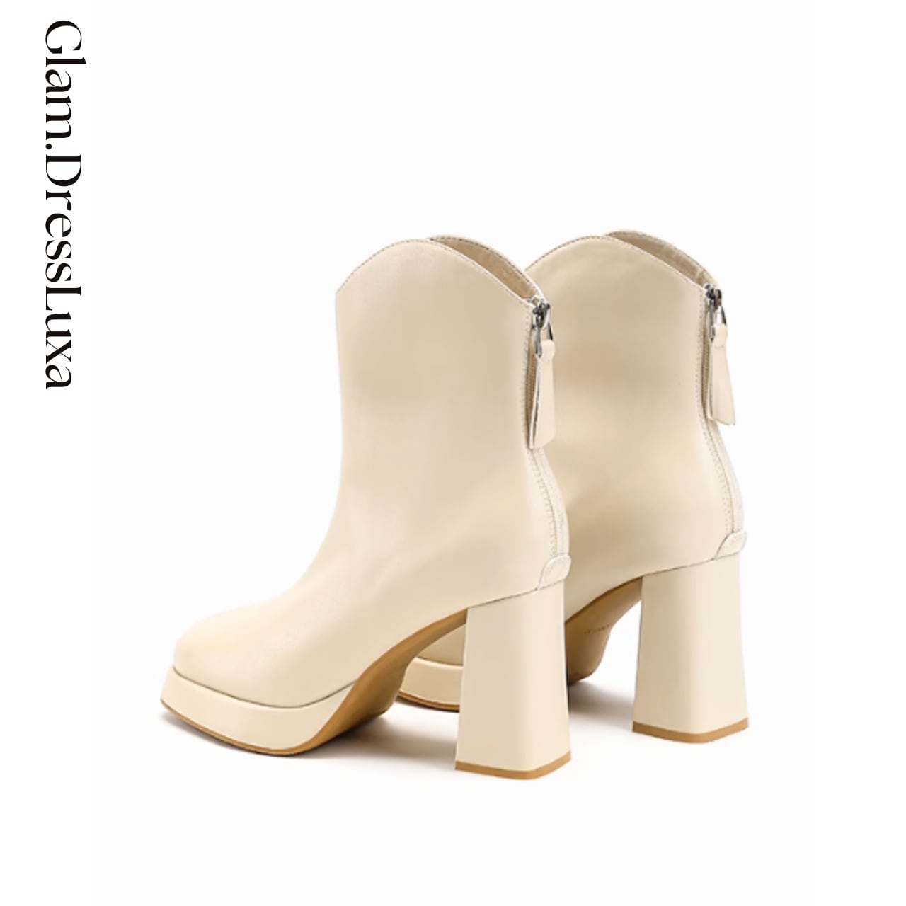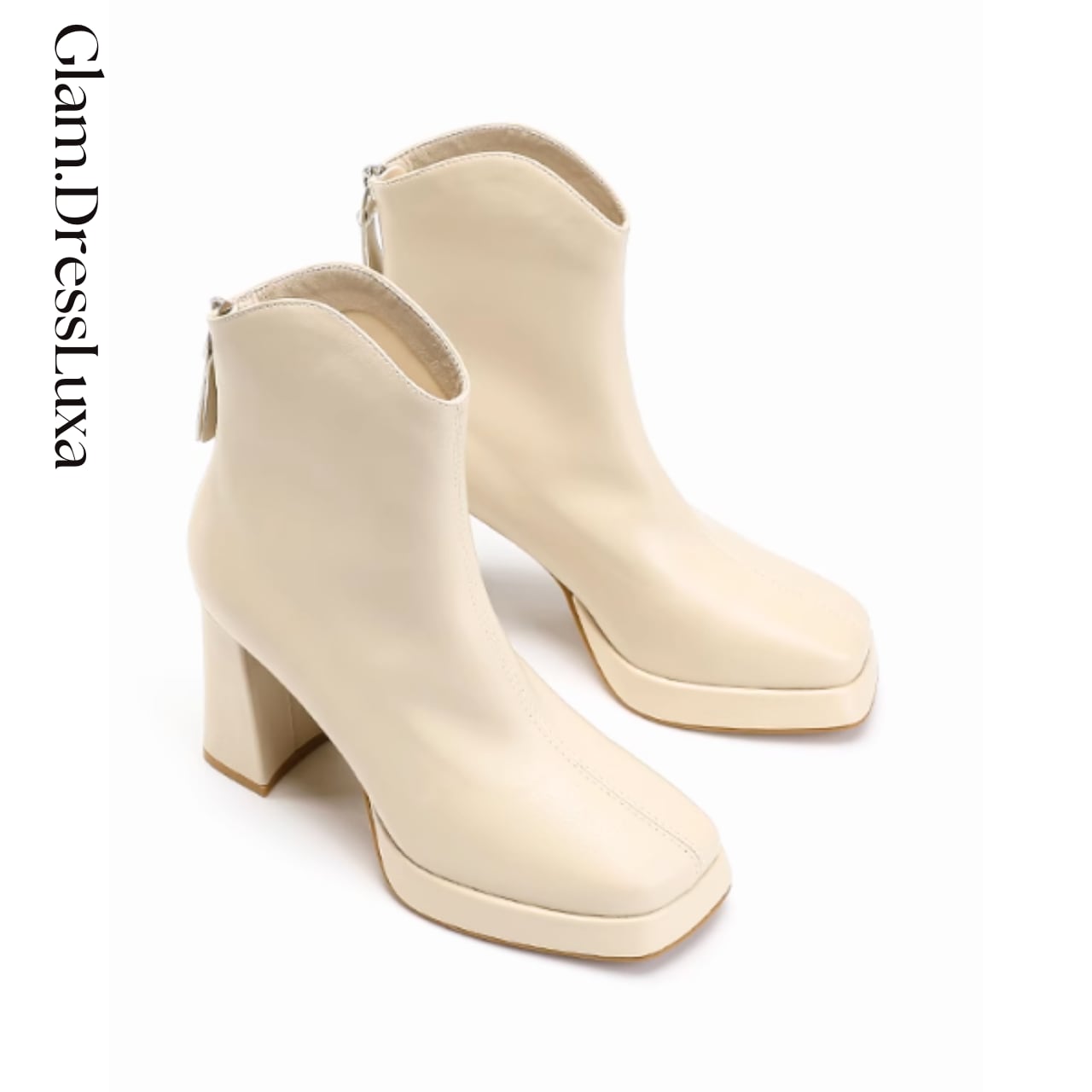 スクエアトゥ ワイドヒール ショートブーツ/2color_H76