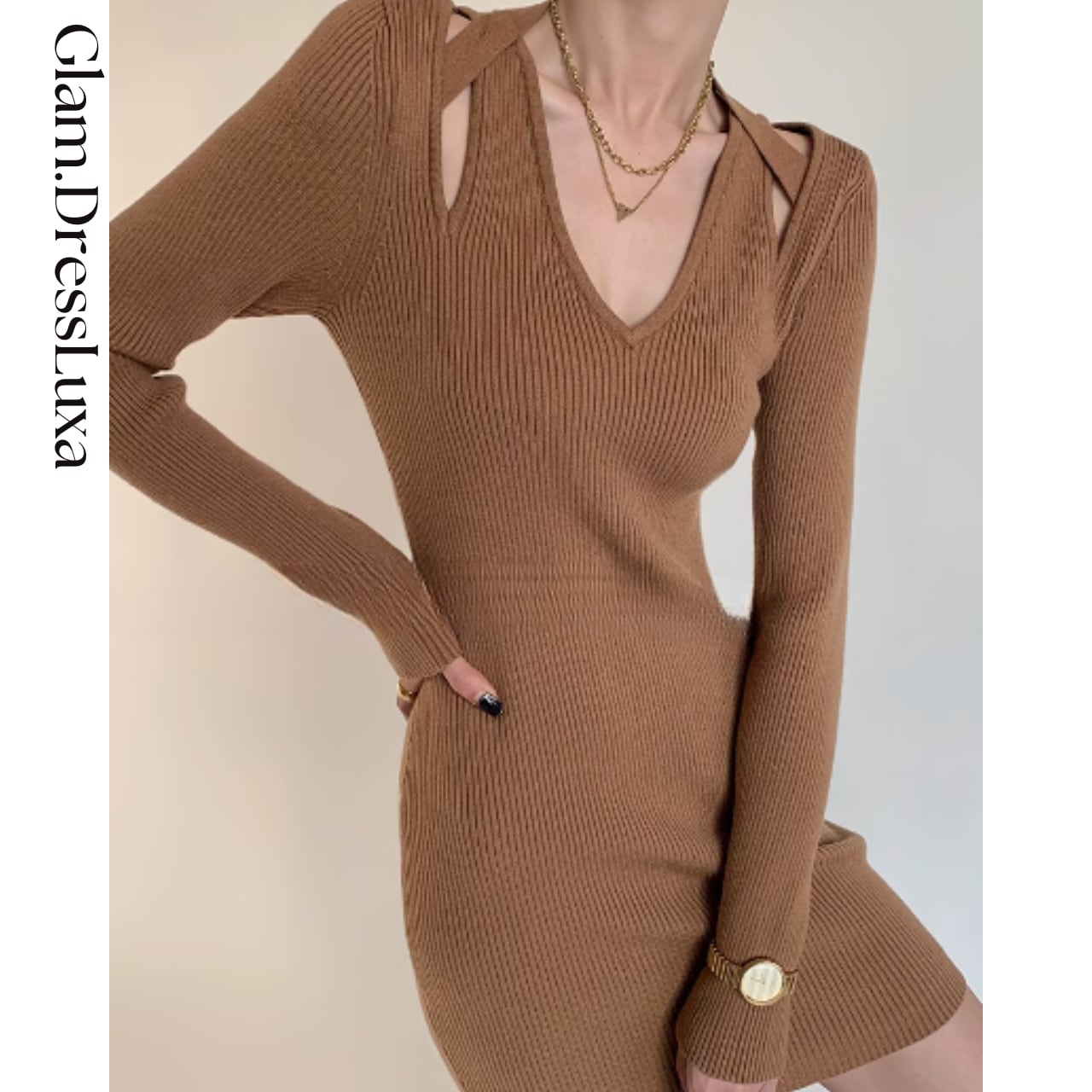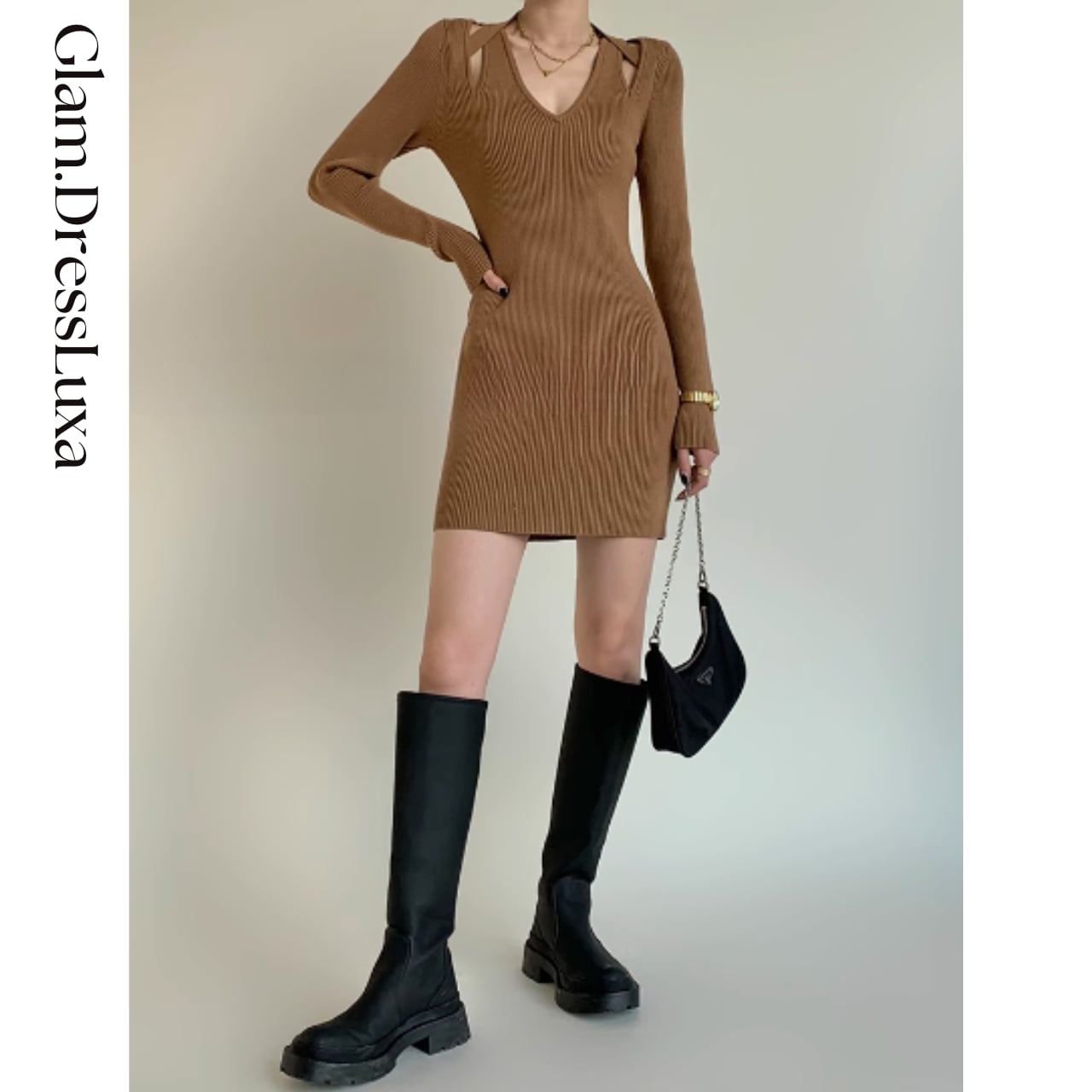 デザインカッティング リブニット ミニワンピース/2color_W782