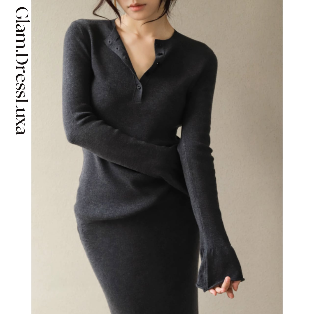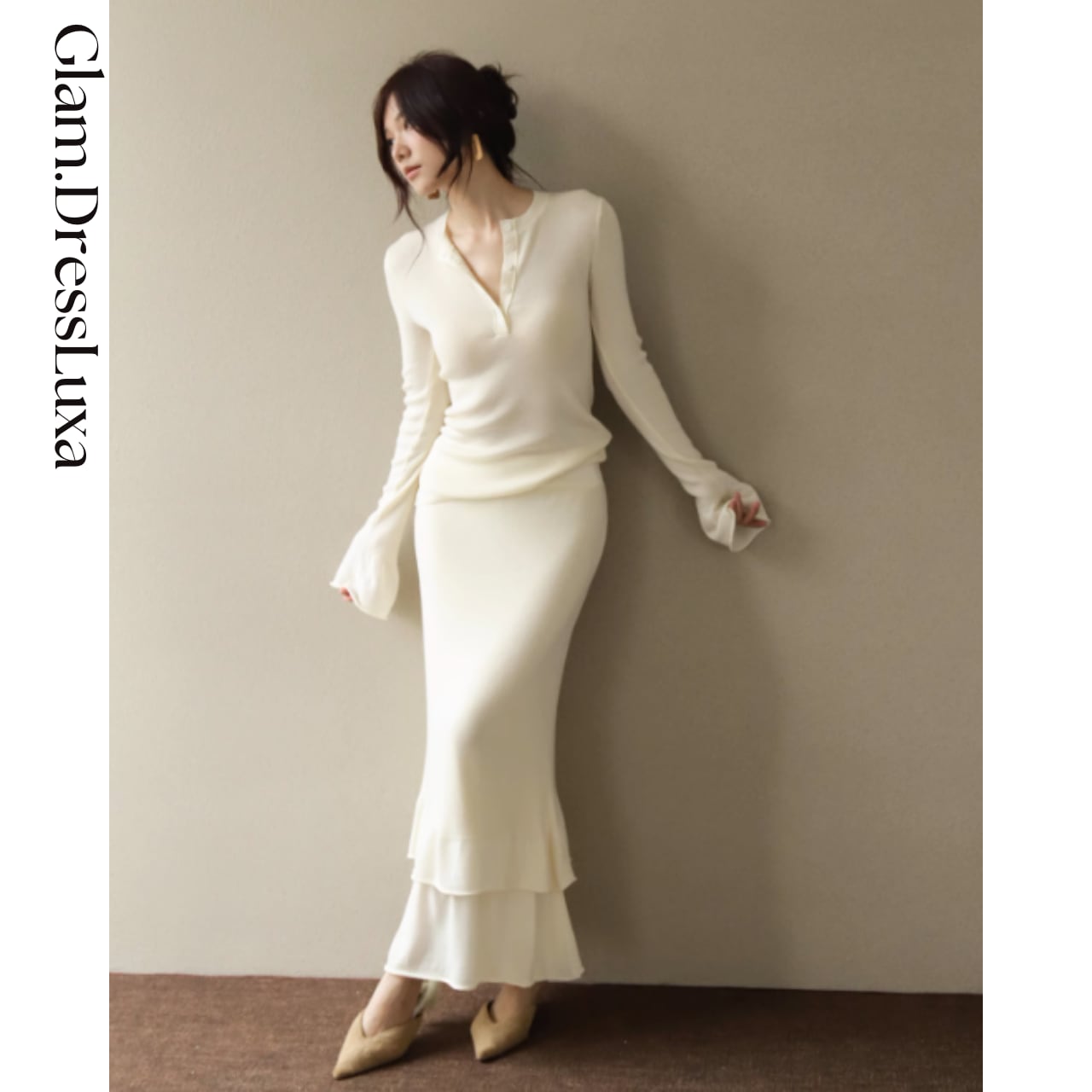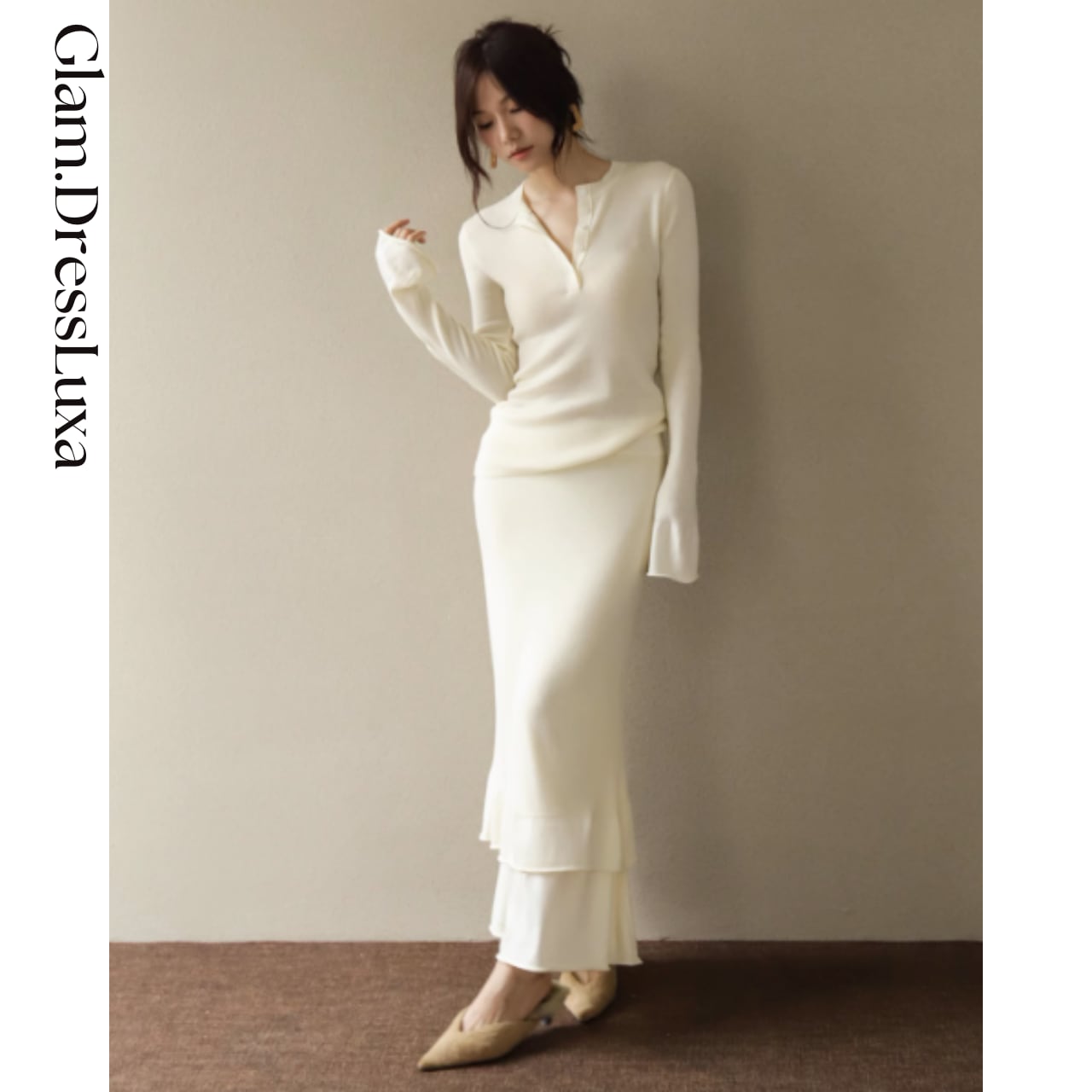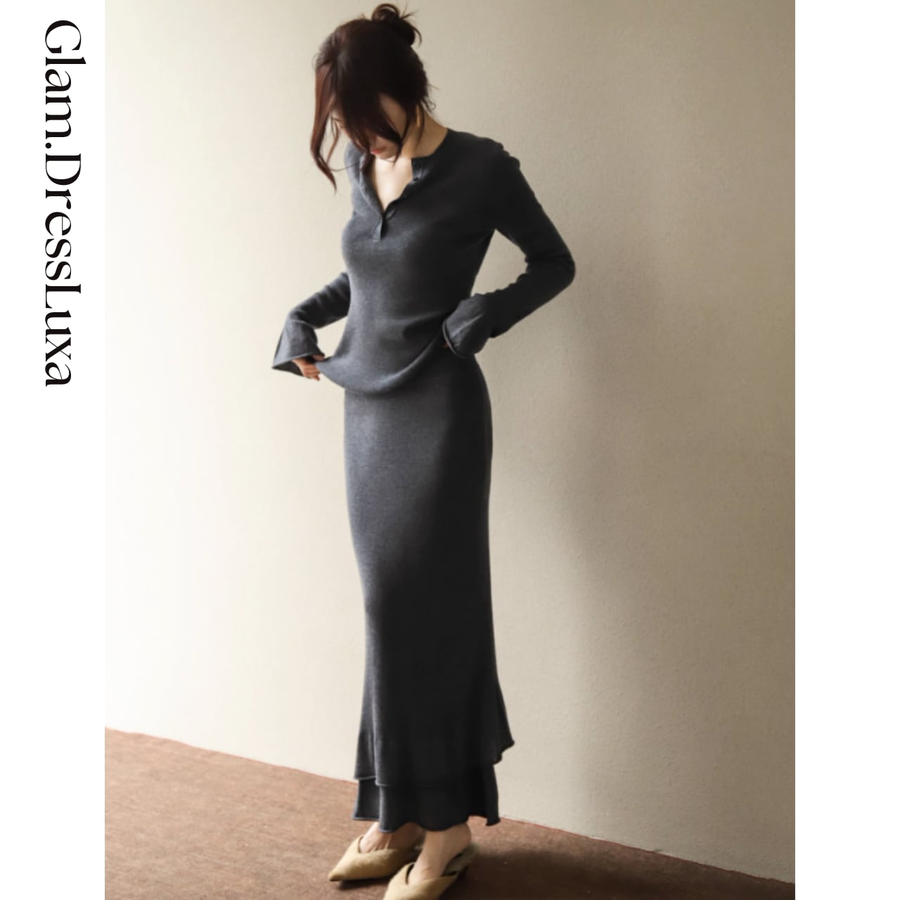 ヘンリーネック フリルスリーブ ニット/2color_T1206