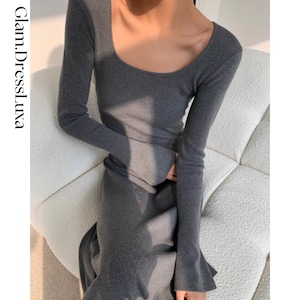 ラウンドネック シンプル ニットワンピース/3color_W754