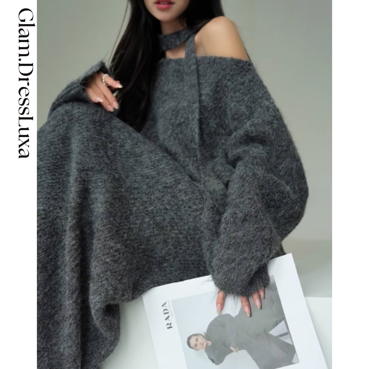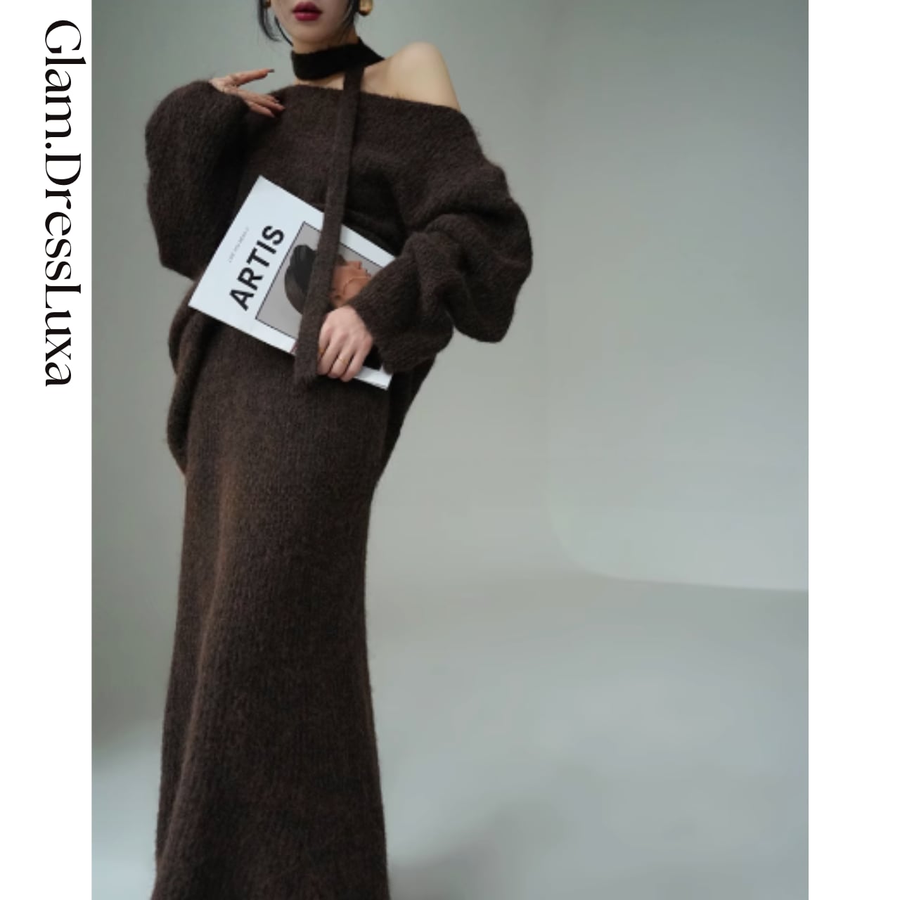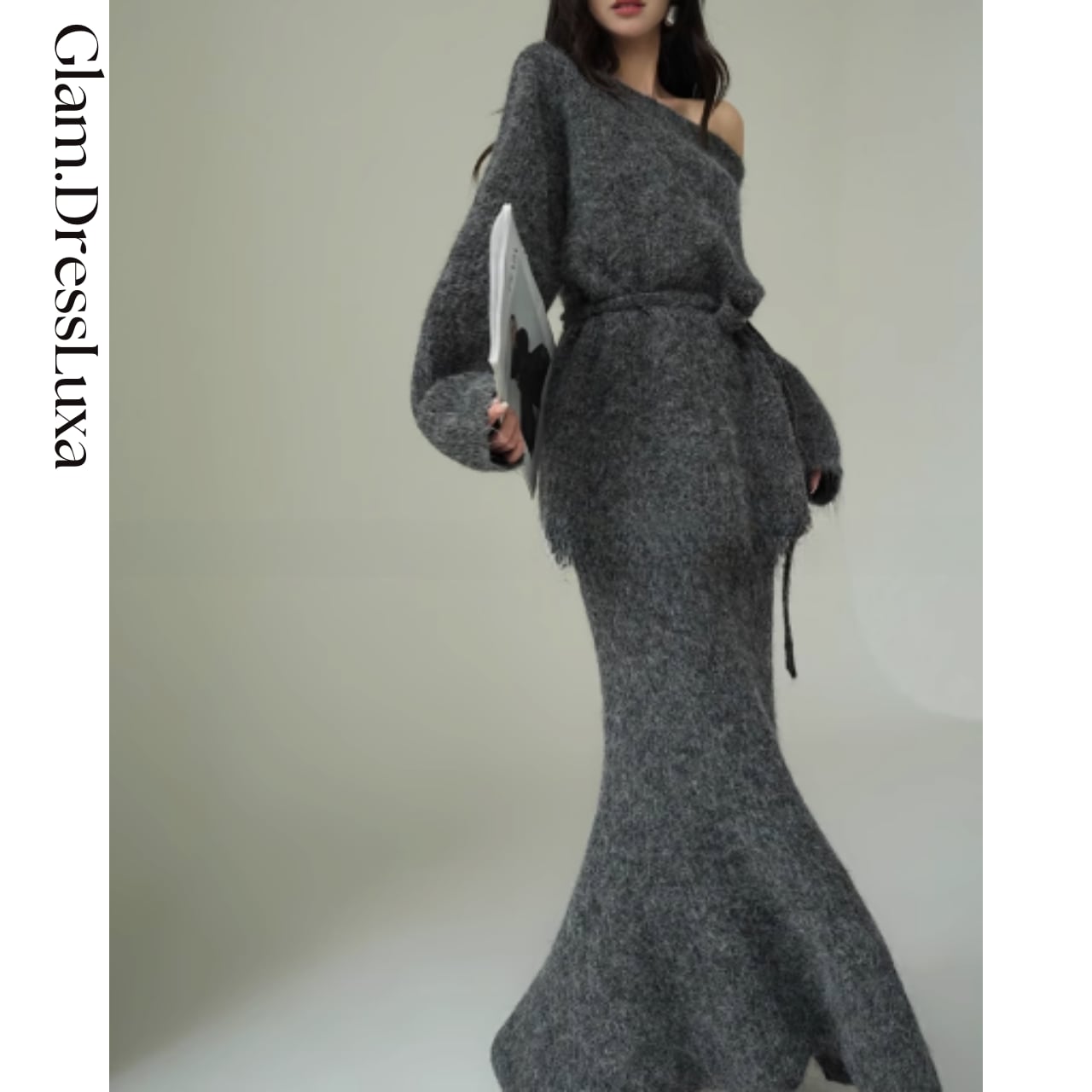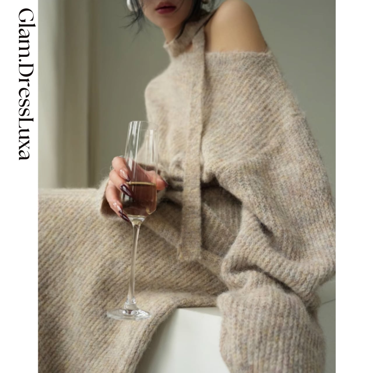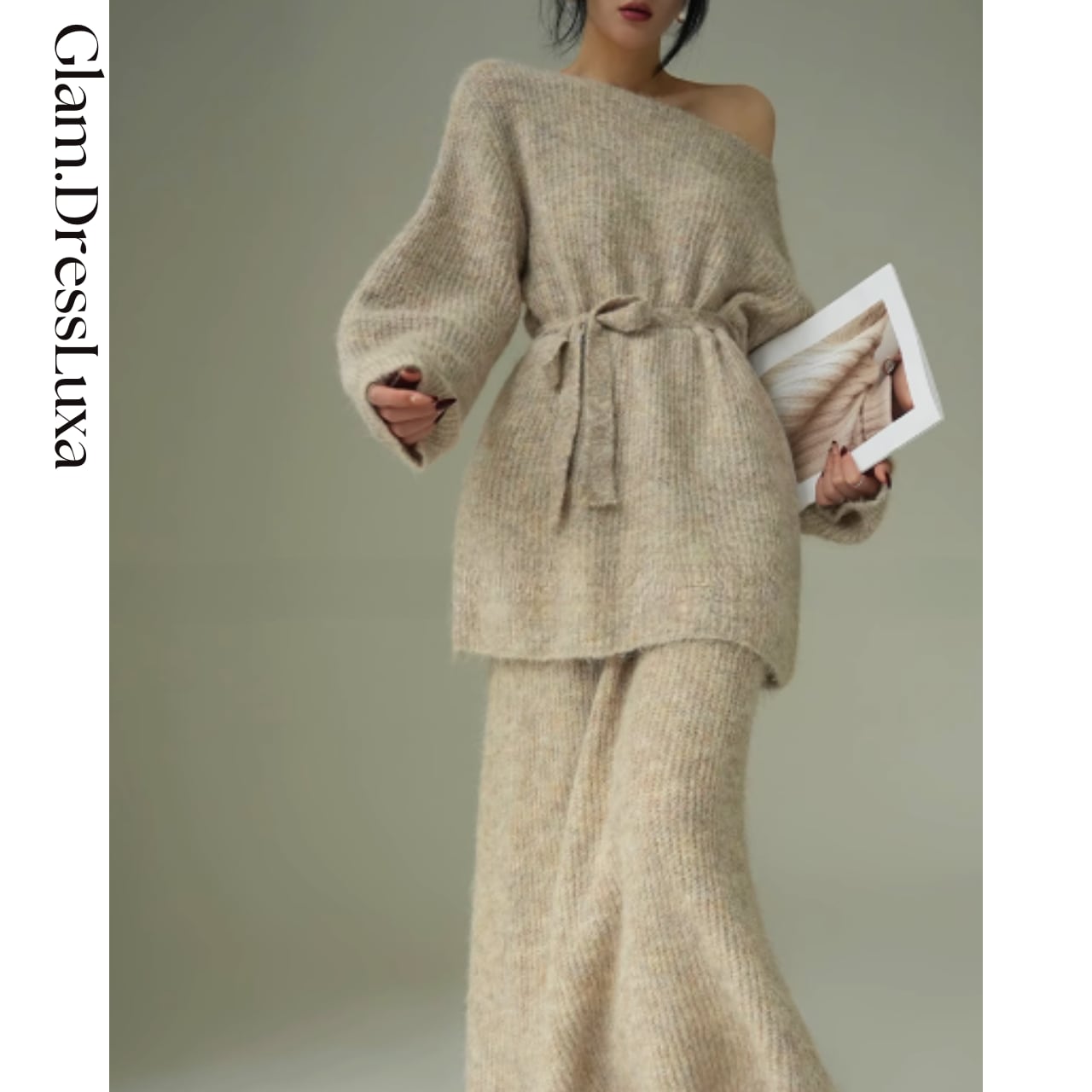 リボンタイ付 ニットスカート セットアップ/4color_ST290