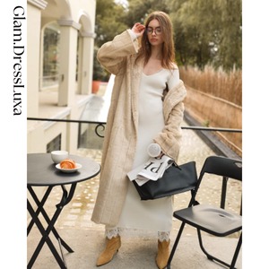 レースネグリジェ レイヤード ニット ワンピース/2color_W816