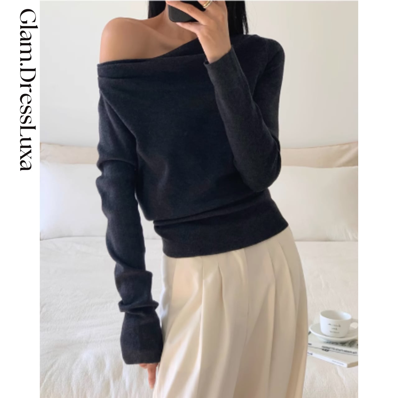 ギャザーオフショル タイトニット/2color_T1201