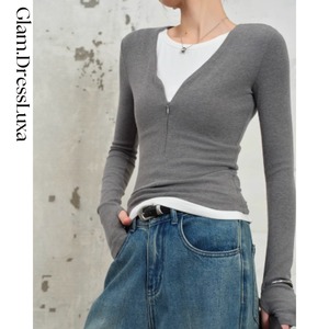 ジップVネック スリムニット/3color_T1325