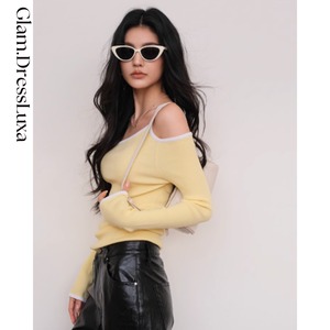 アシメオフショル コントラストリブニット/3color_T1077