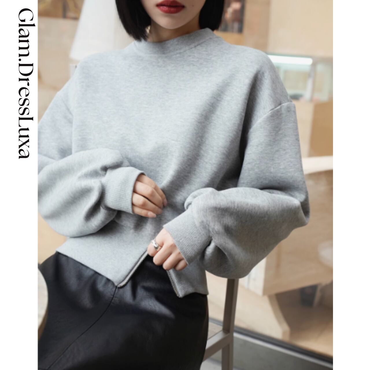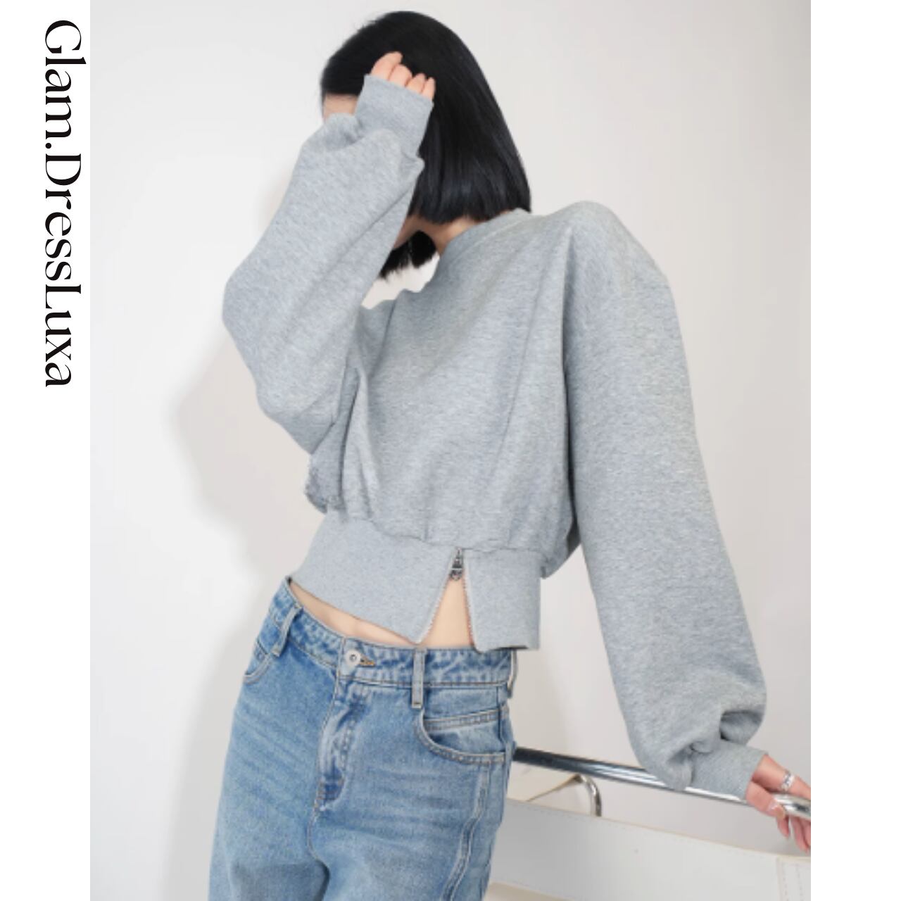 ミニジップ クロップド スウェット/2color_T1087